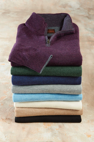 Patrick James Long Sleeve Solid Merino Mock 1/4 Zip