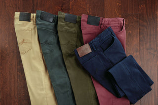 Lightweight, breathable with comfortable stretch in 7.4 oz. 56% cotton/42% lyocell/2% elastane. Five pockets, classic waist, comfort rise, straight leg. 34" inseam, 16" leg opening.