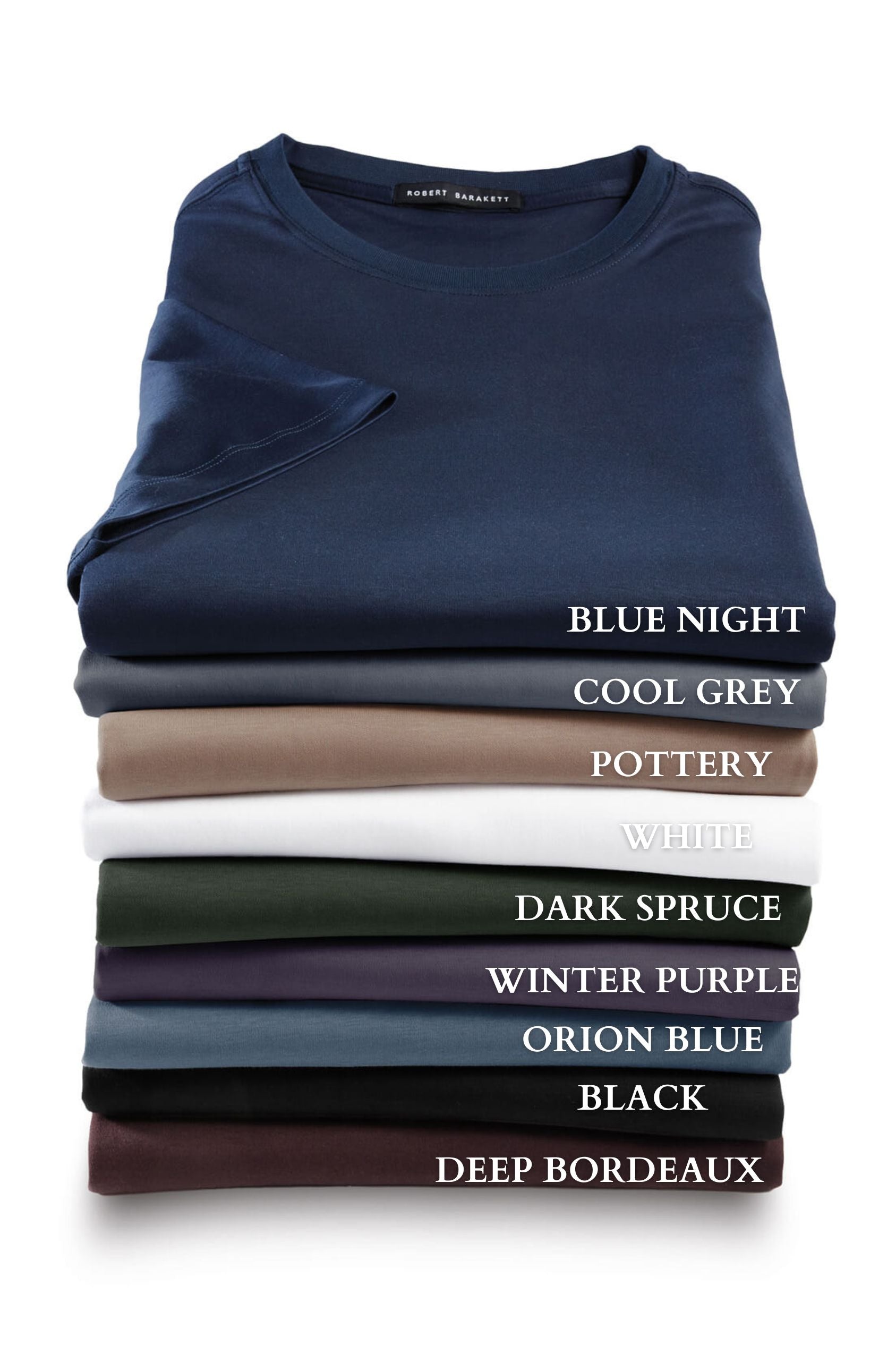 100% USA-grown pima cotton. Short sleeves, straight hem with side vents.