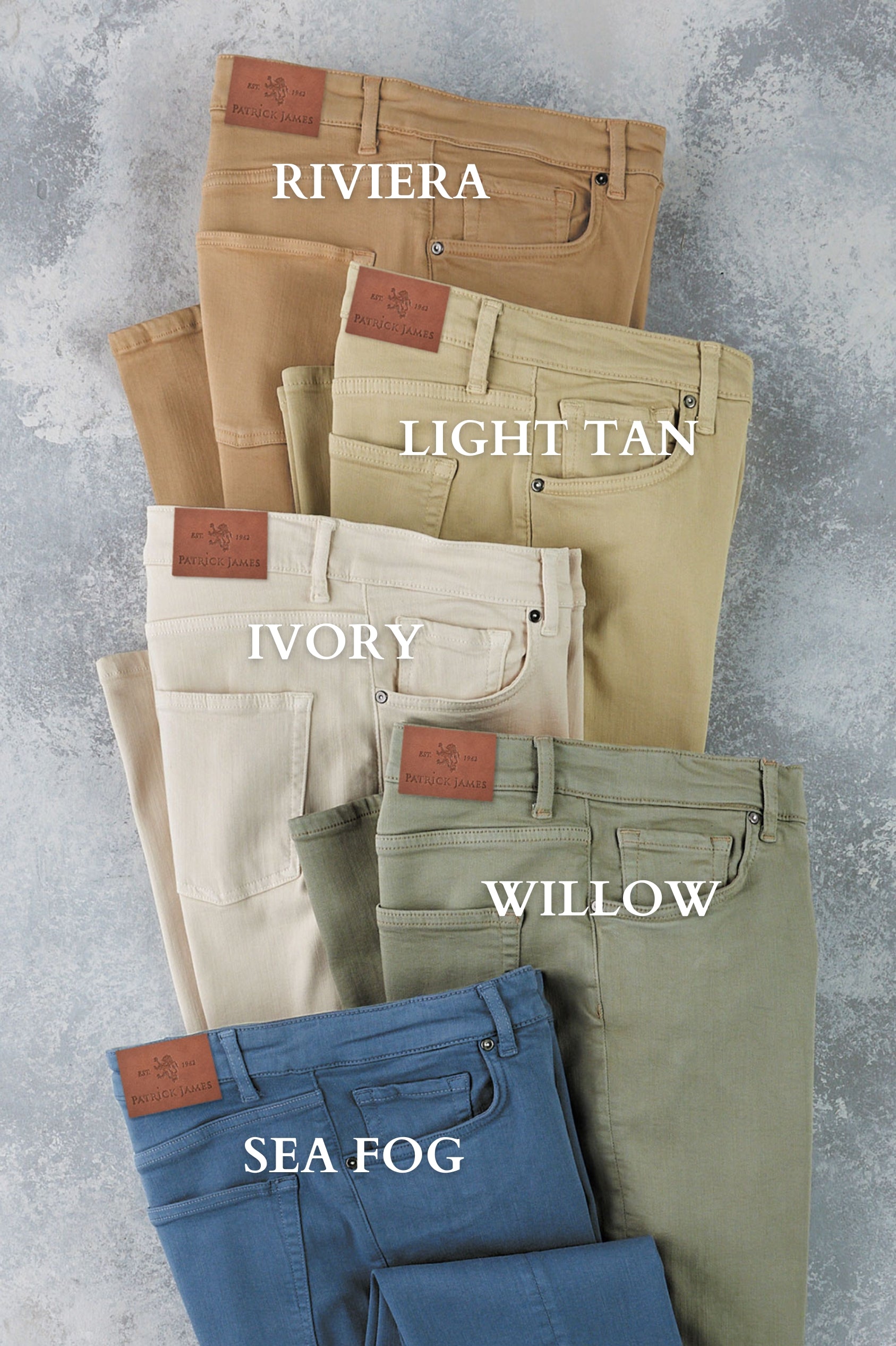 Soft, breathable, four-way stretch 49.5% cotton/32% lyocell/17% polyester/1.5% elastane. Easy fit, five pockets, straight leg. Machine wash. Imported. 34" inseam.