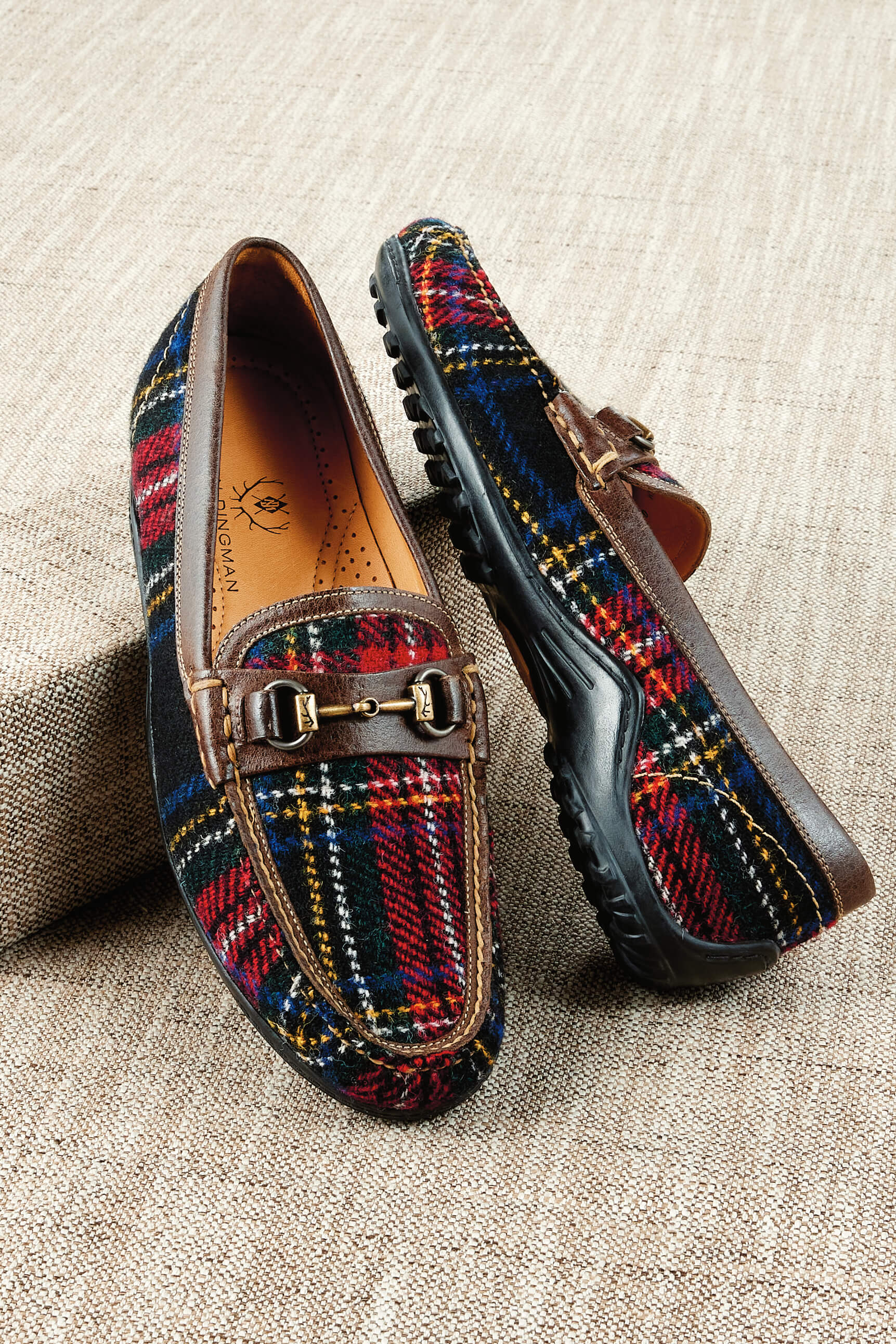 Harris tweed fabric. Horse bit detail, heel-to-toe comfort system, glove leather lining, stitched-on rubber sole, handcrafted on Bill last.