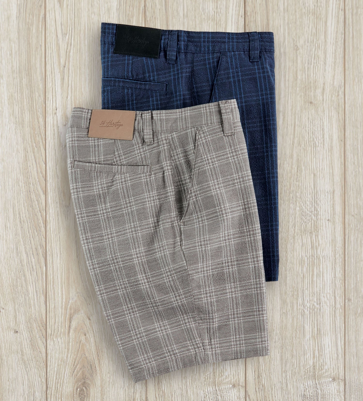 Premium seersucker of 56% cotton/42% lyocell/2% elastane. Comfort stretch, lightweight, breathable. Tapered fit, angled side pockets, welt back pockets. Machine wash. Imported. 8-1/2" inseam, 21" leg opening.
