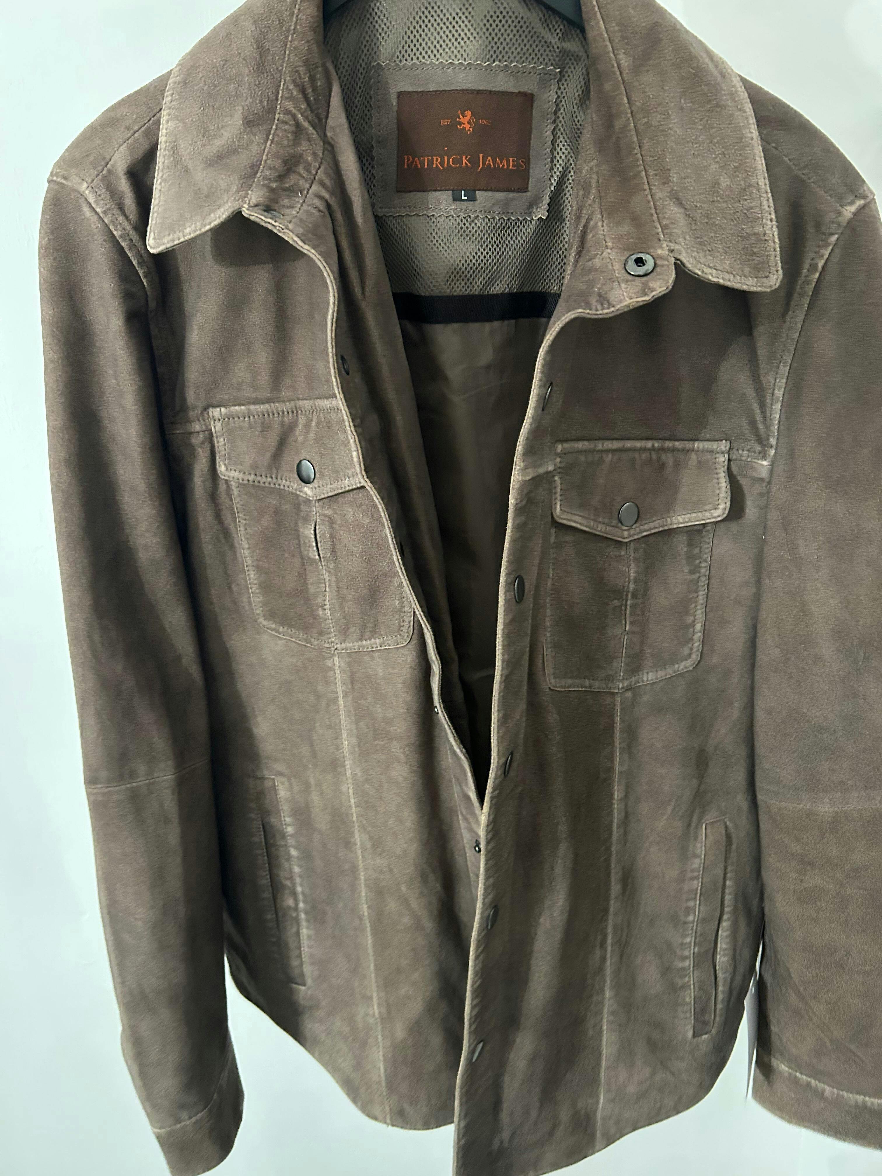 Italian lambskin with luxe, antiqued, matte finish. Snap front and cuffs, shirt collar, snap-flap chest pockets, welt pockets, slightly curved hem, full lining.