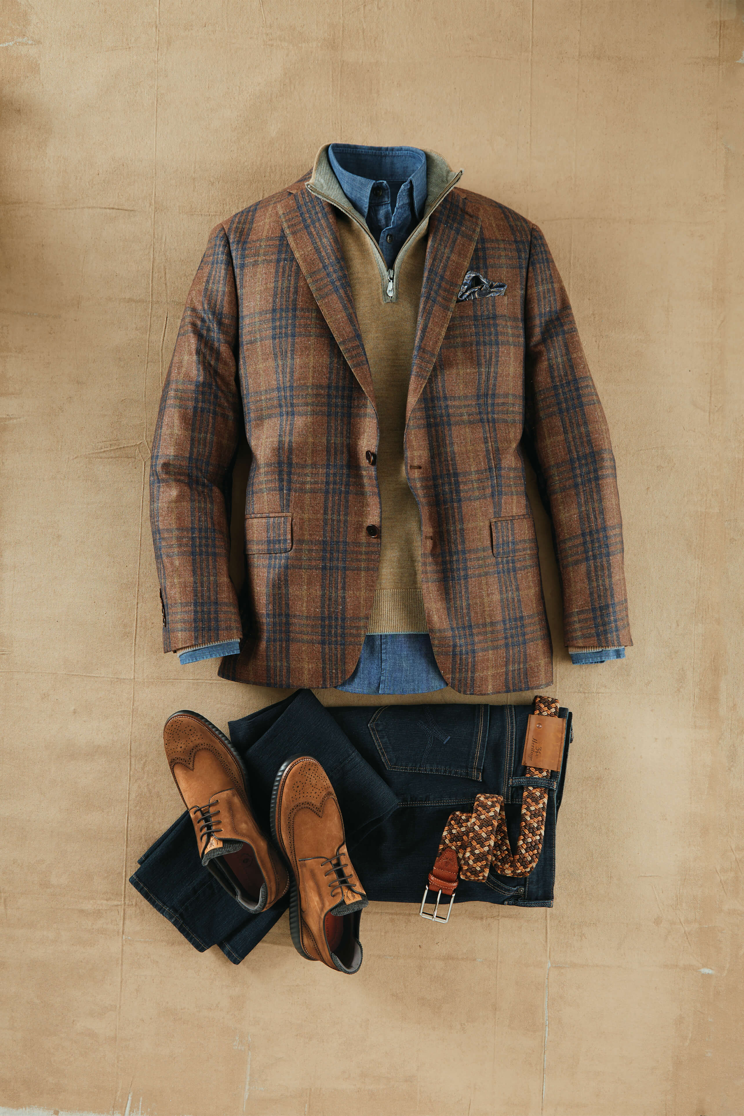 Luxe 76% wool/14% silk/10% linen weave by Talia Di Delfino, one of Italy's finest mills. Soft construction, two buttons, side vents, flap pockets, half lining.