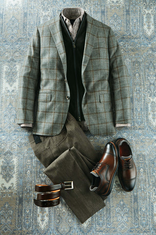 Unique, sophisticated 86% wool/10% silk/4% cashmere weave by famed Loro Piana Italian mill. Soft construction, two buttons, side vents, flap pockets, half lining.