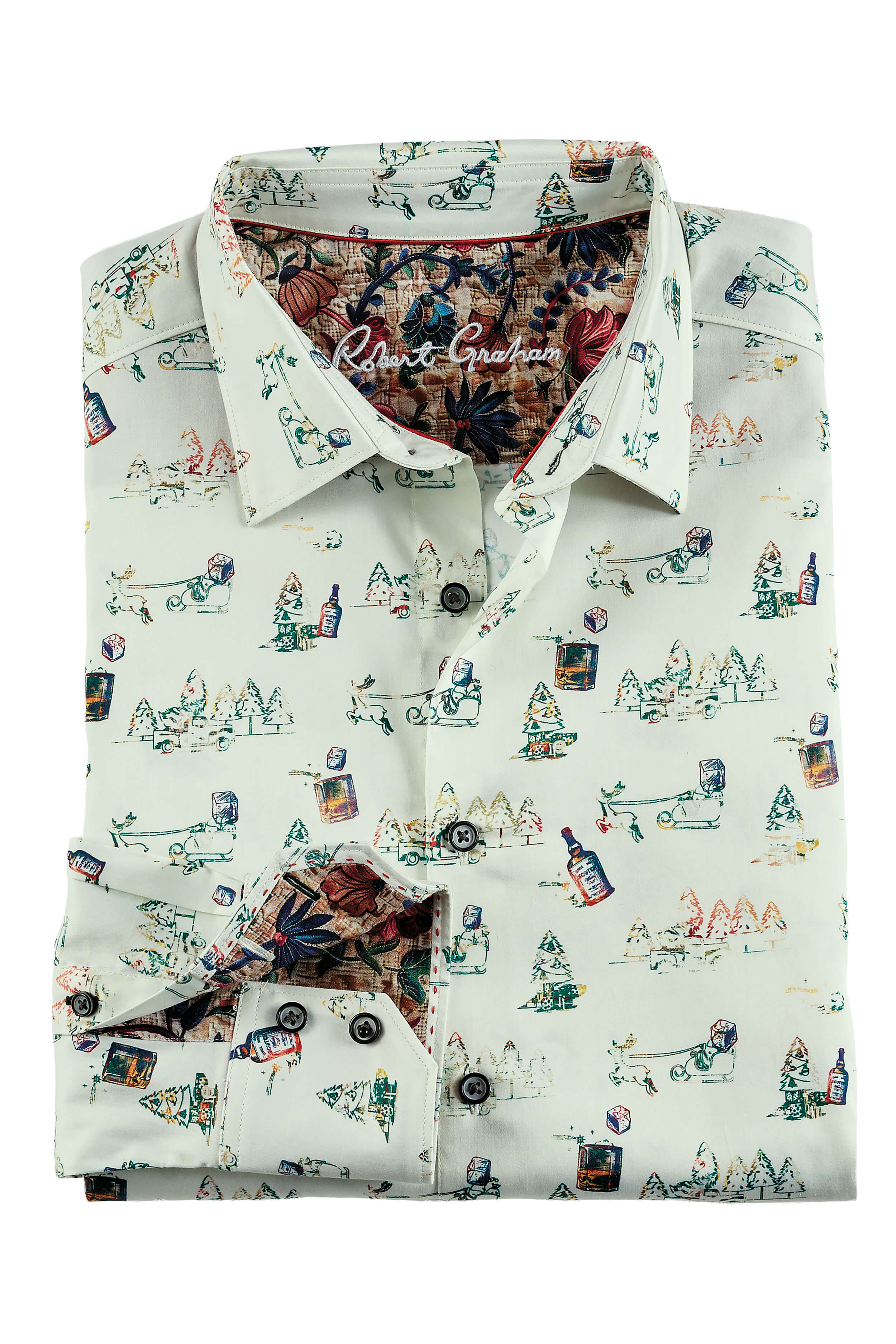 Calder Long Sleeve Spread Collar Santa and Sleigh Shirt