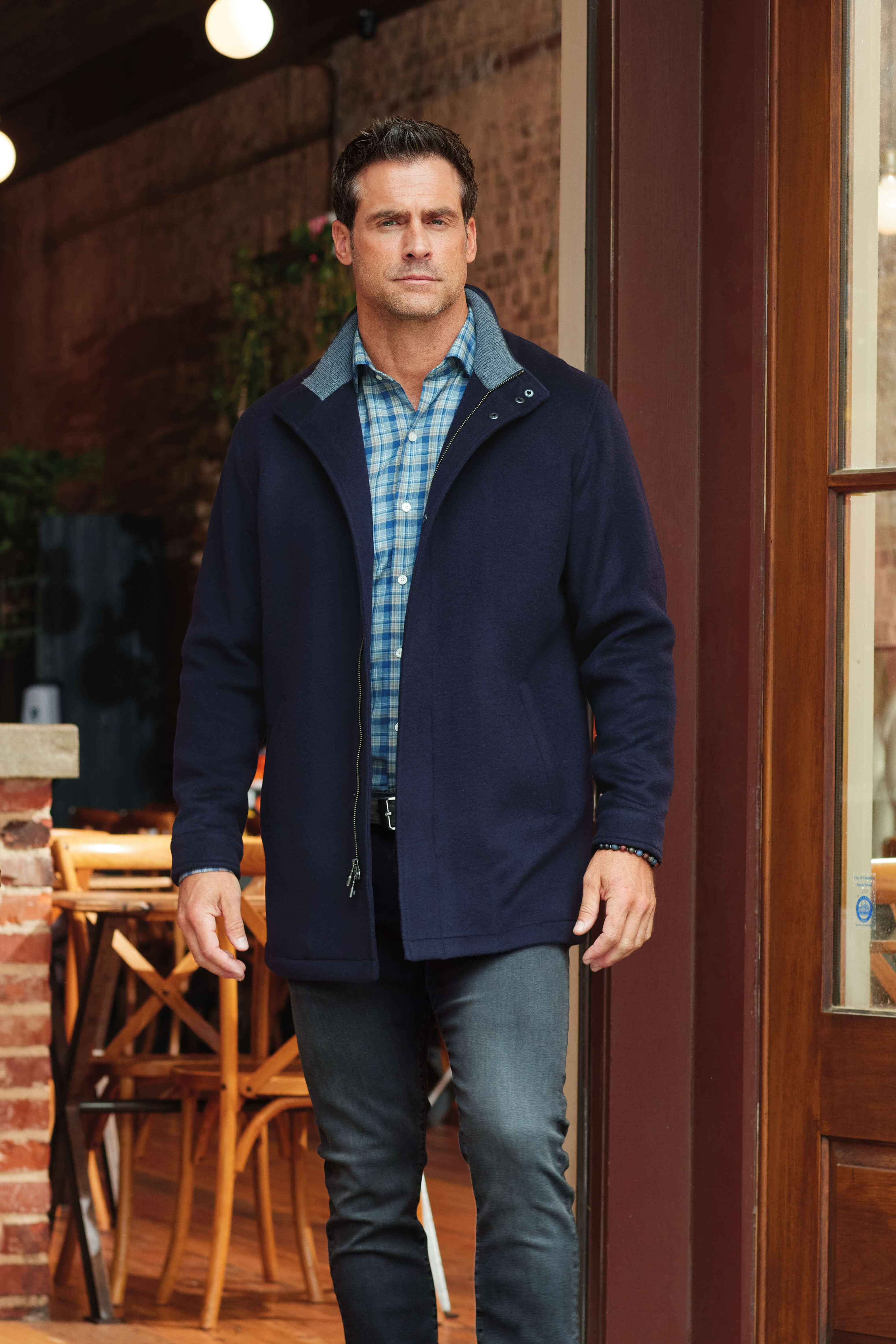 Crown Flex City Coat delivers lightweight warmth in an elevated casual style, with a stretch knit 100% wool fabric for classic style and excellent mobility. Travel-friendly pockets are fashioned in an ultra-soft stretch lining for ultimate comfort and functionality.