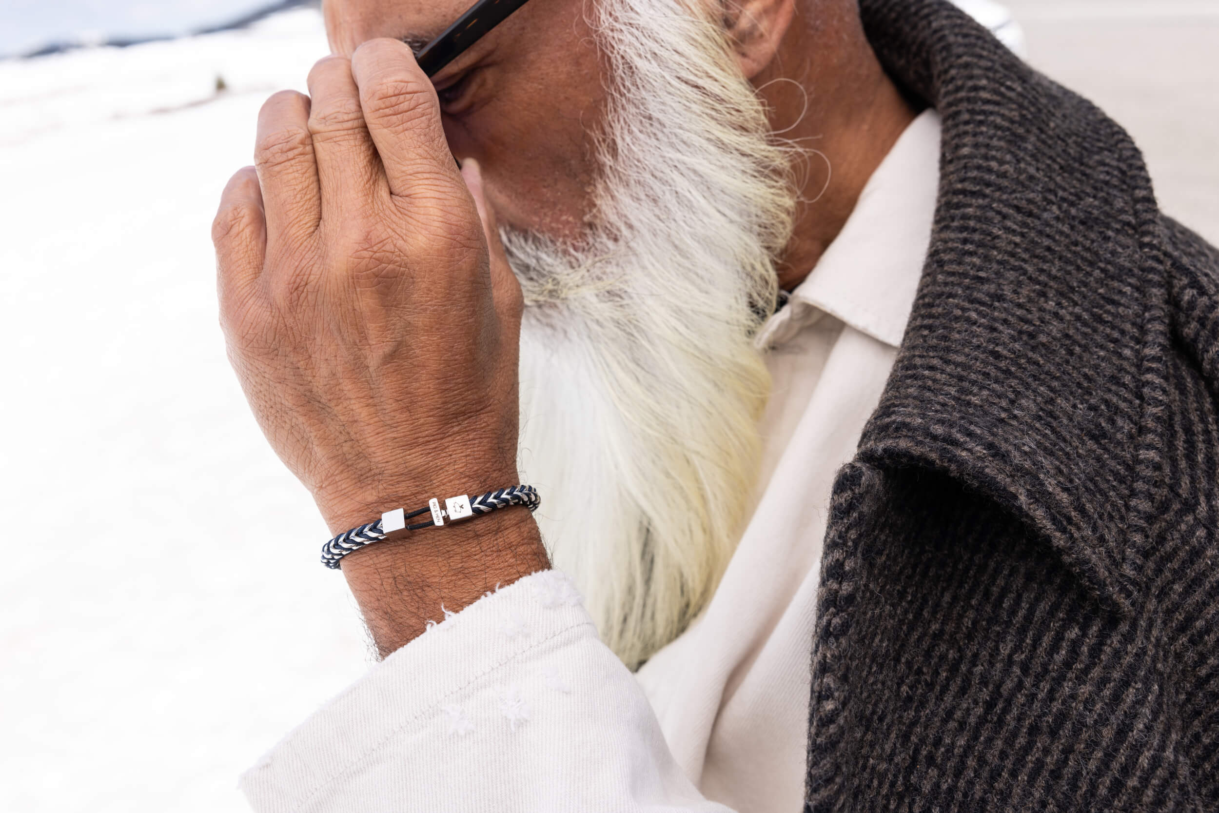 Handmade in The Netherlands of rugged, nylon shipping rope and stainless steel. Army/Vintage, Navy/Silver, Black/Black. M, M/L, L.