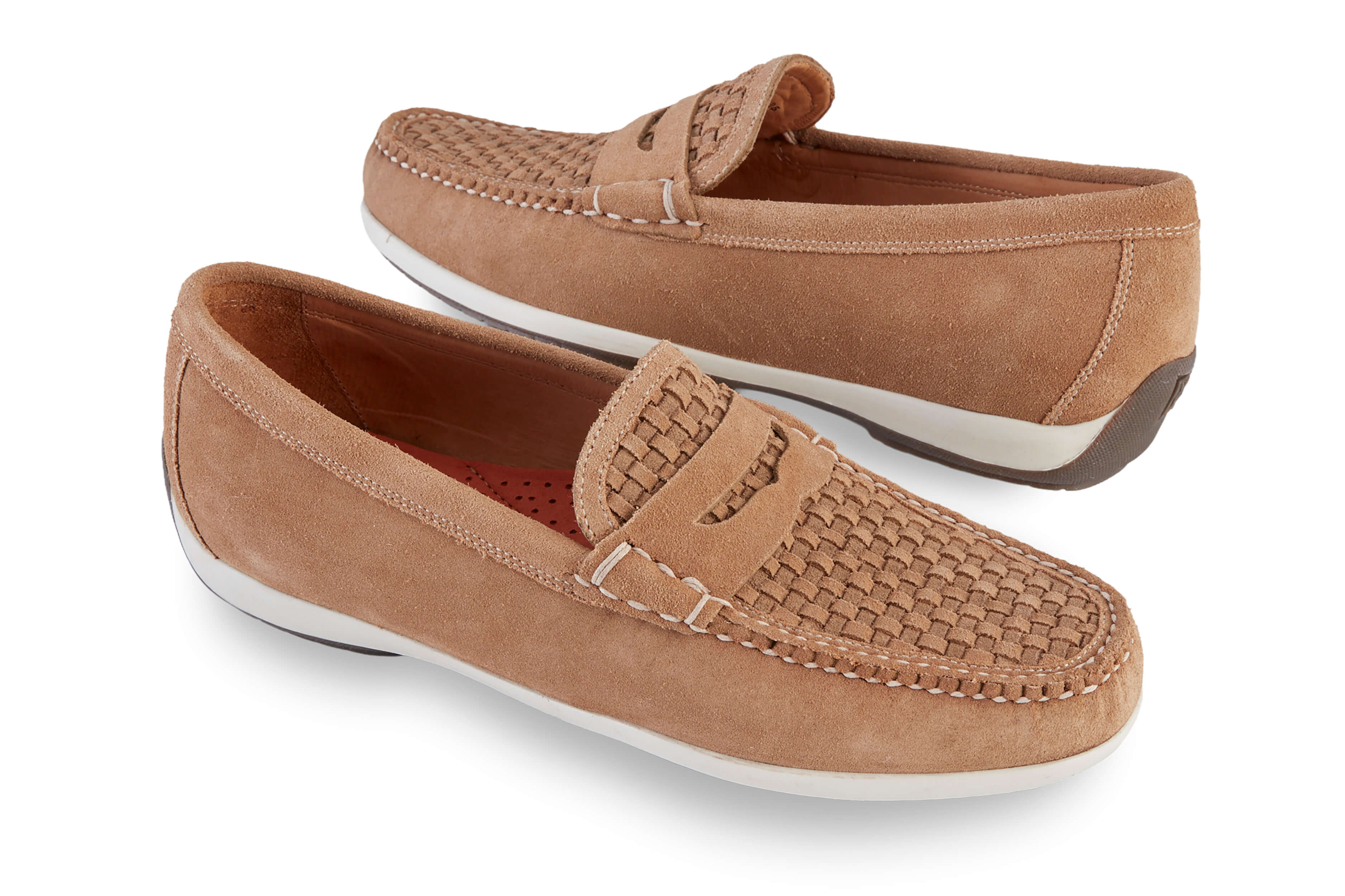 Water-repellent suede leather. Heel-to-toe comfort system, glove leather lining, low profile rubber sole, handsewn on the Seaside last.