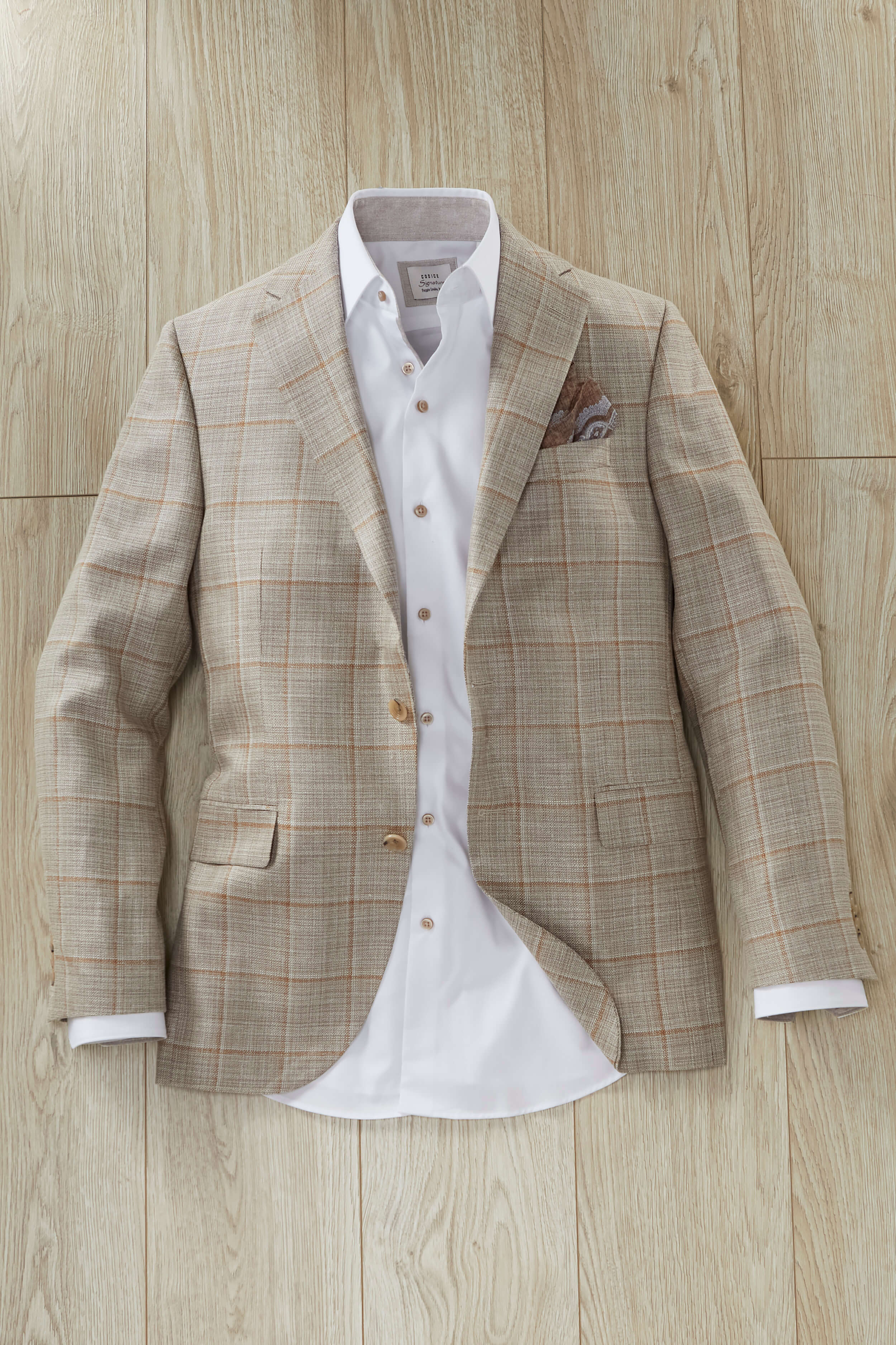Luxurious, linen-look from the Italian mill Loro Piana. Two buttons, side vents, flap pockets, full lining.