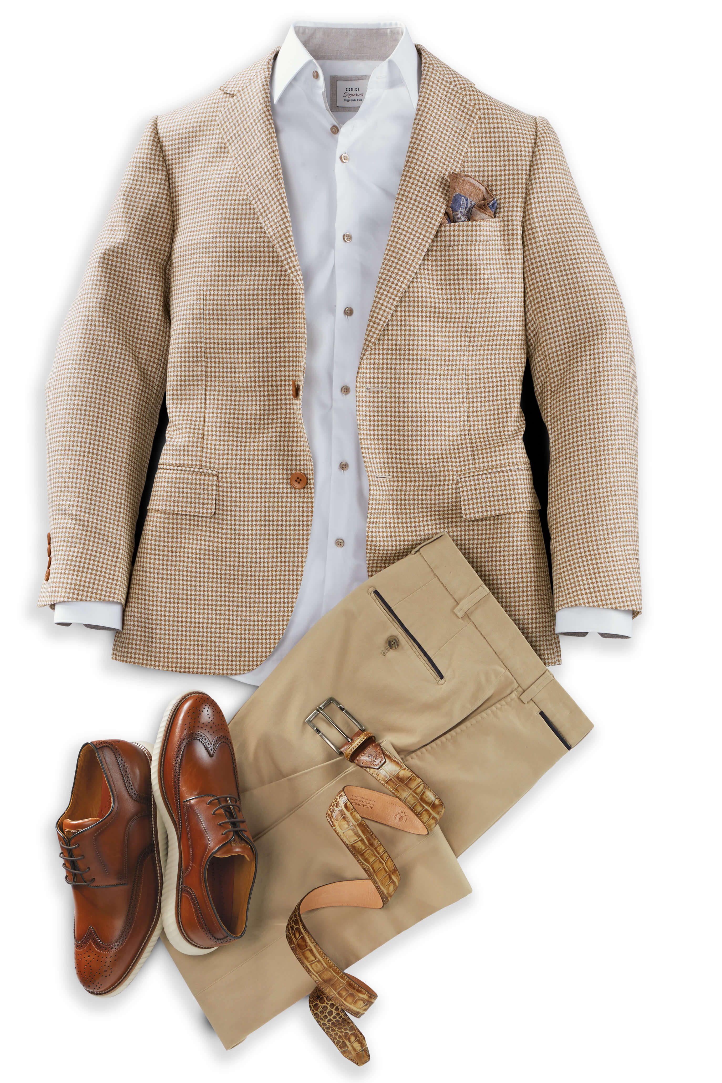 Go-with-everything style. Two buttons, side vents, flap pockets, half lining.