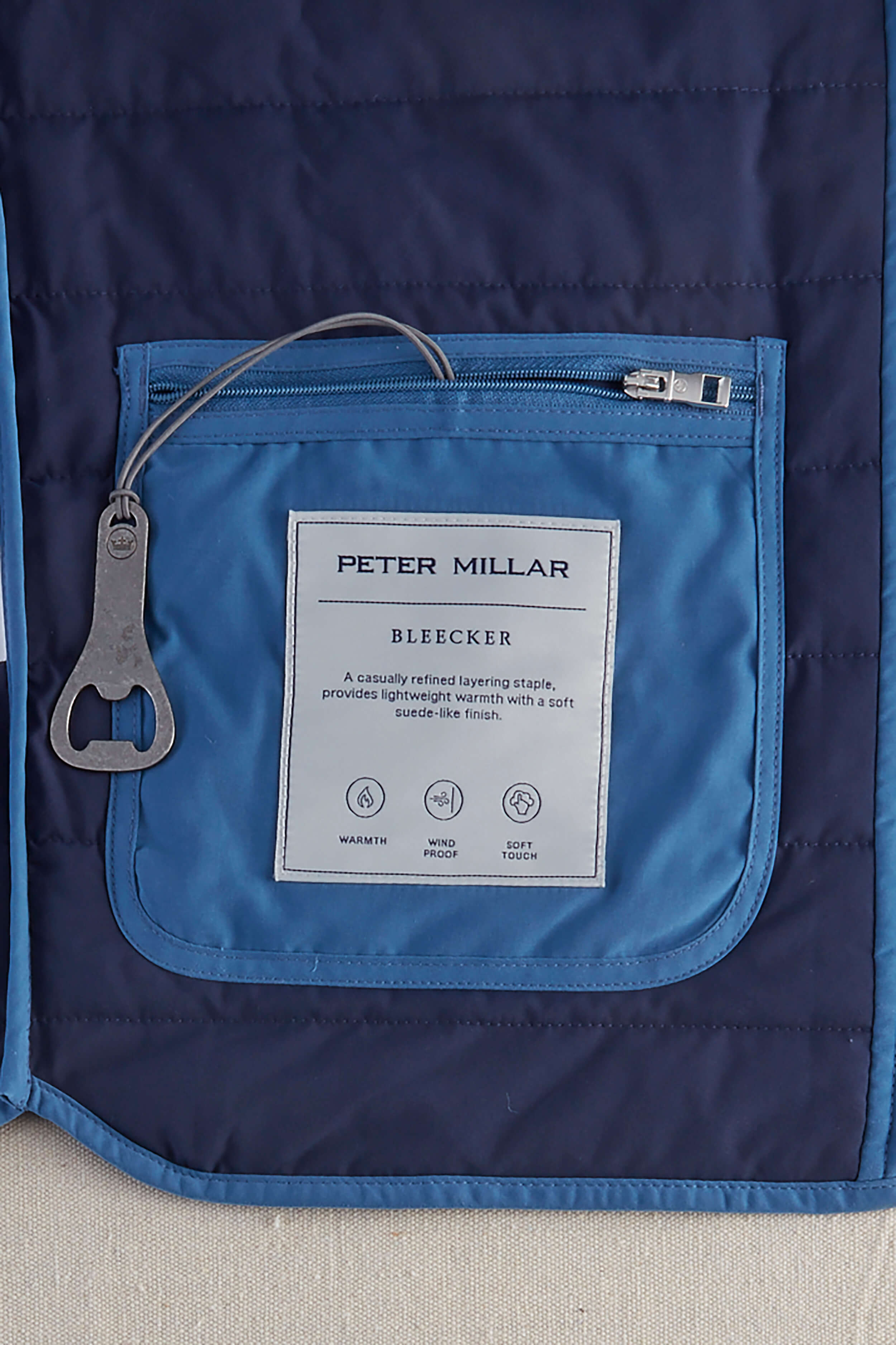 Spring-weight warmth in soft, wind-resistant, micro-sueded 83% polyester/17% nylon. Lightweight insulation, two-way full zipper, stand-up collar, welt pockets, adjustable side snaps.