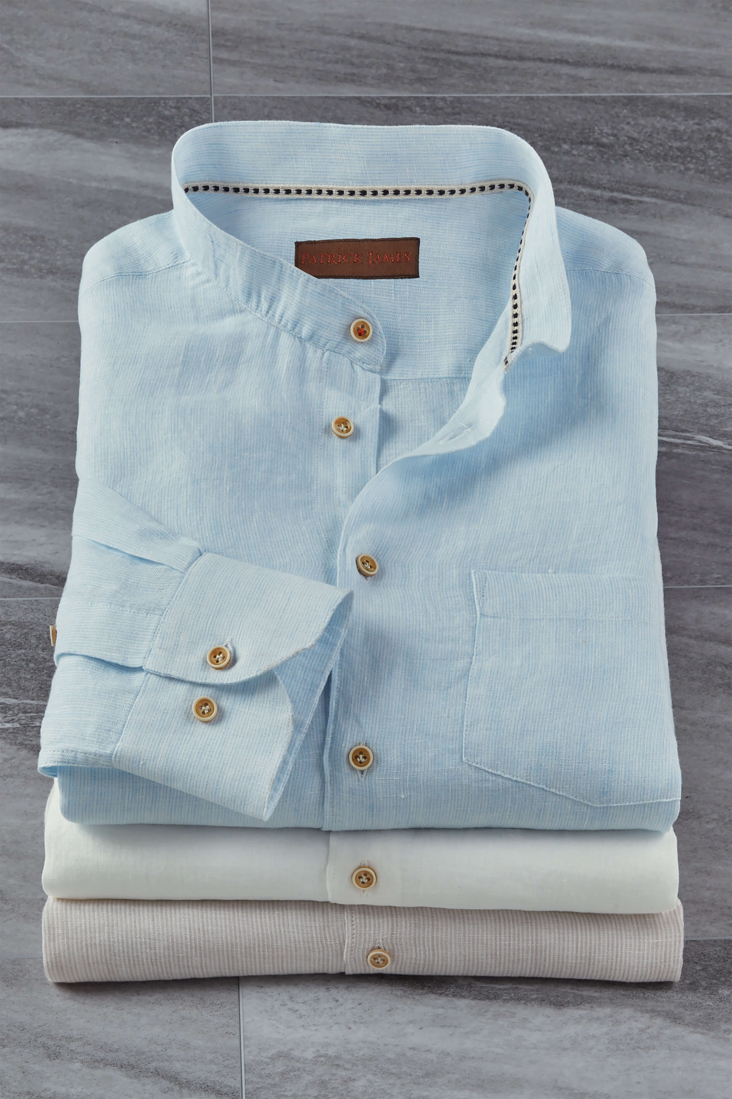 Patrick James Long Sleeve Mini Stripe Banded Collar Linen Shirt