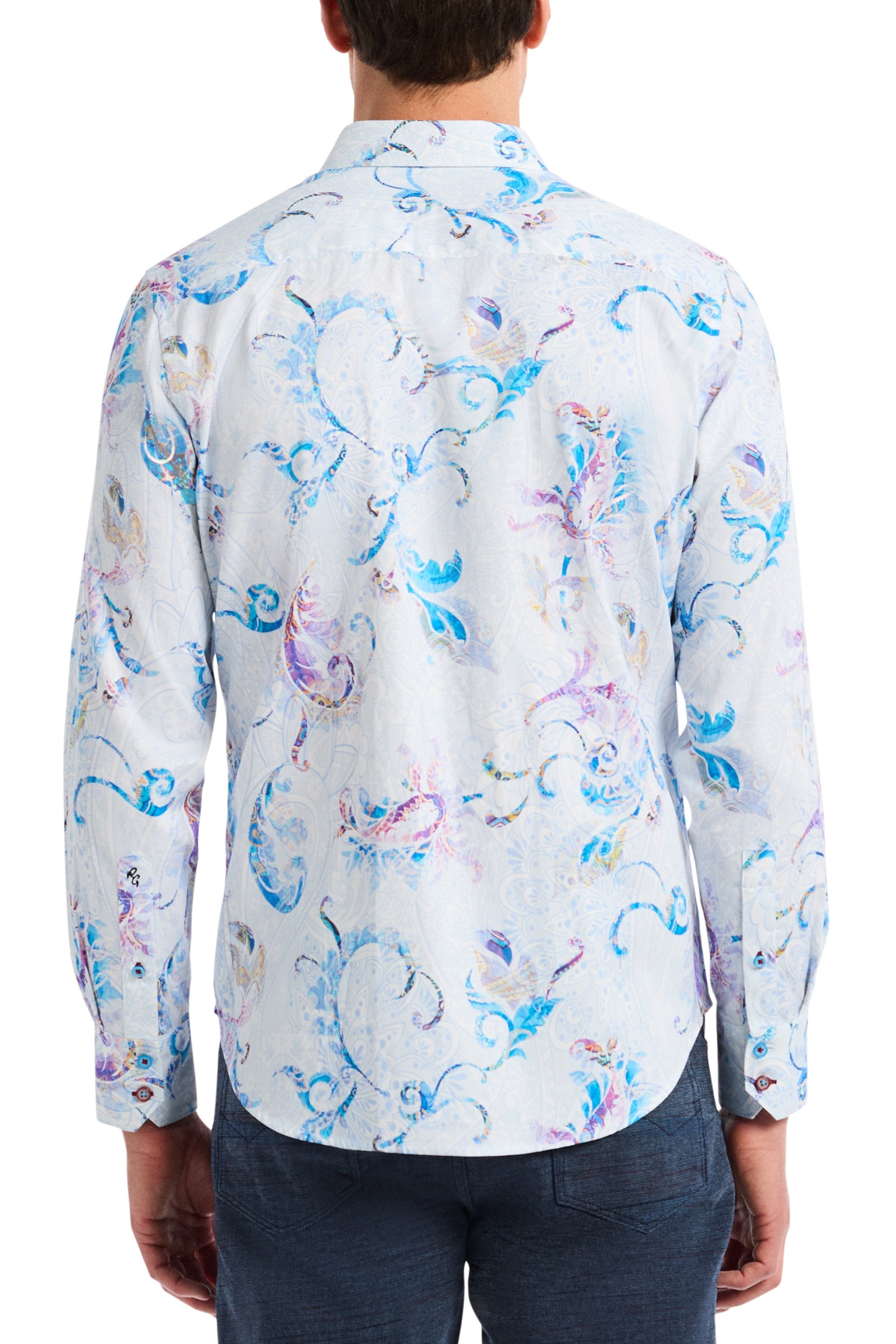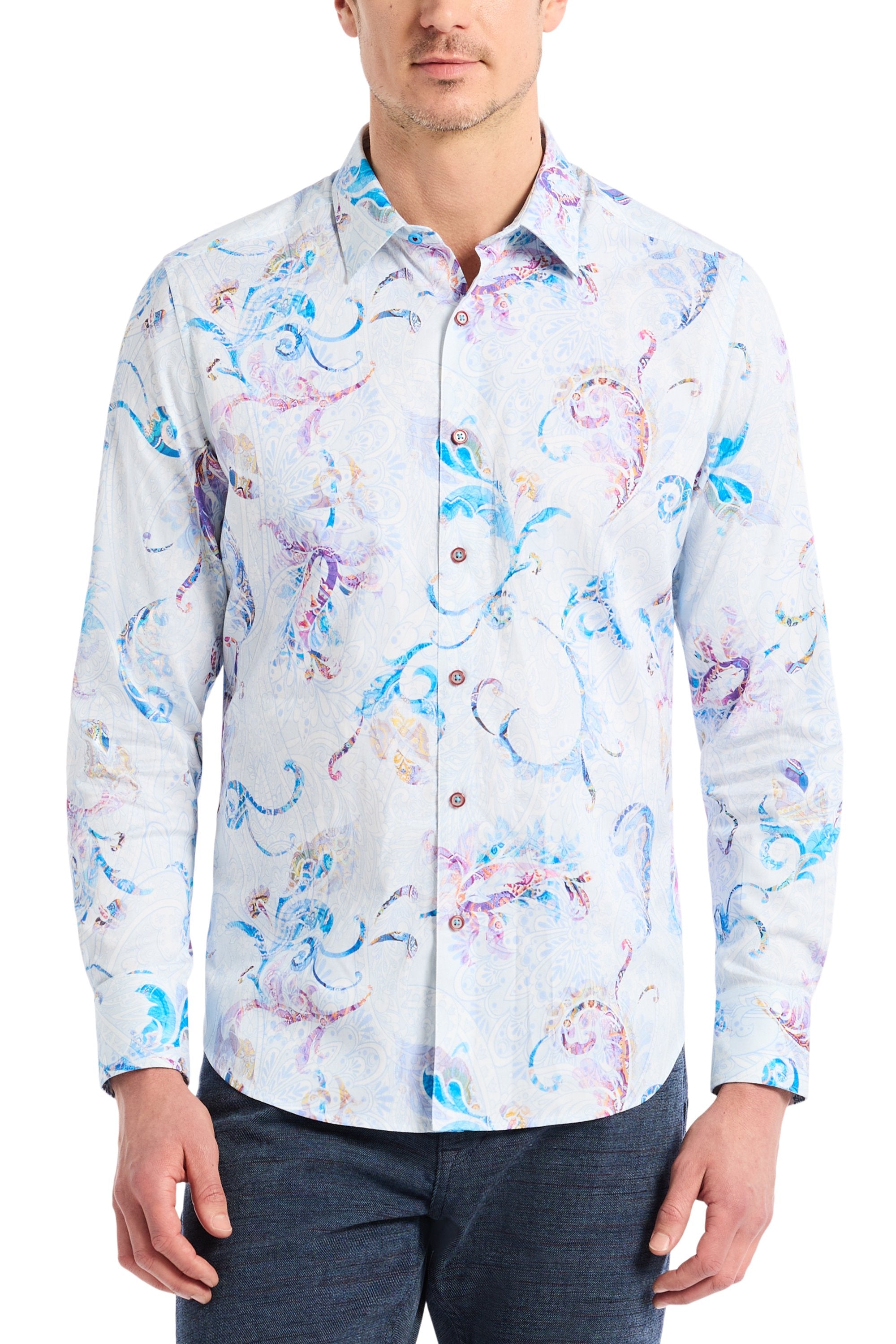 Elevate your wardrobe with this tasteful take on a classic paisley print. Soft-hued paisleys dance across this button-down, with an oversized pattern floating softly in the background. Add an extra layer of interest to your wardrobe with this unique piece.