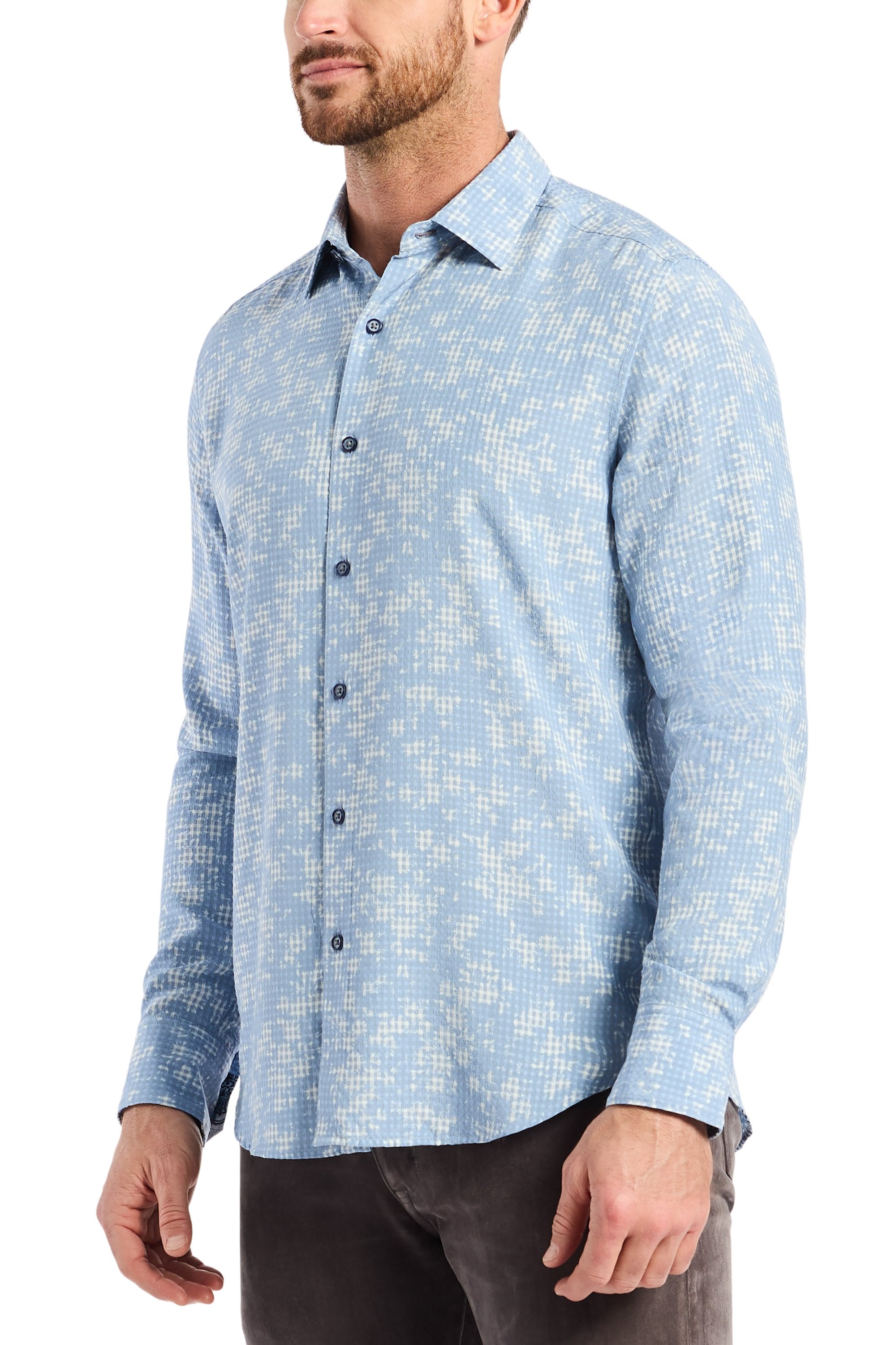 This lightweight button down is a visual masterpiece. Burnt-out micro plaid dances over hidden florals, with a contrast print at the collar and cuffs. You'll love how this shirt blends artistic intrigue and relaxed style, instantly becoming your seasonal go-to.