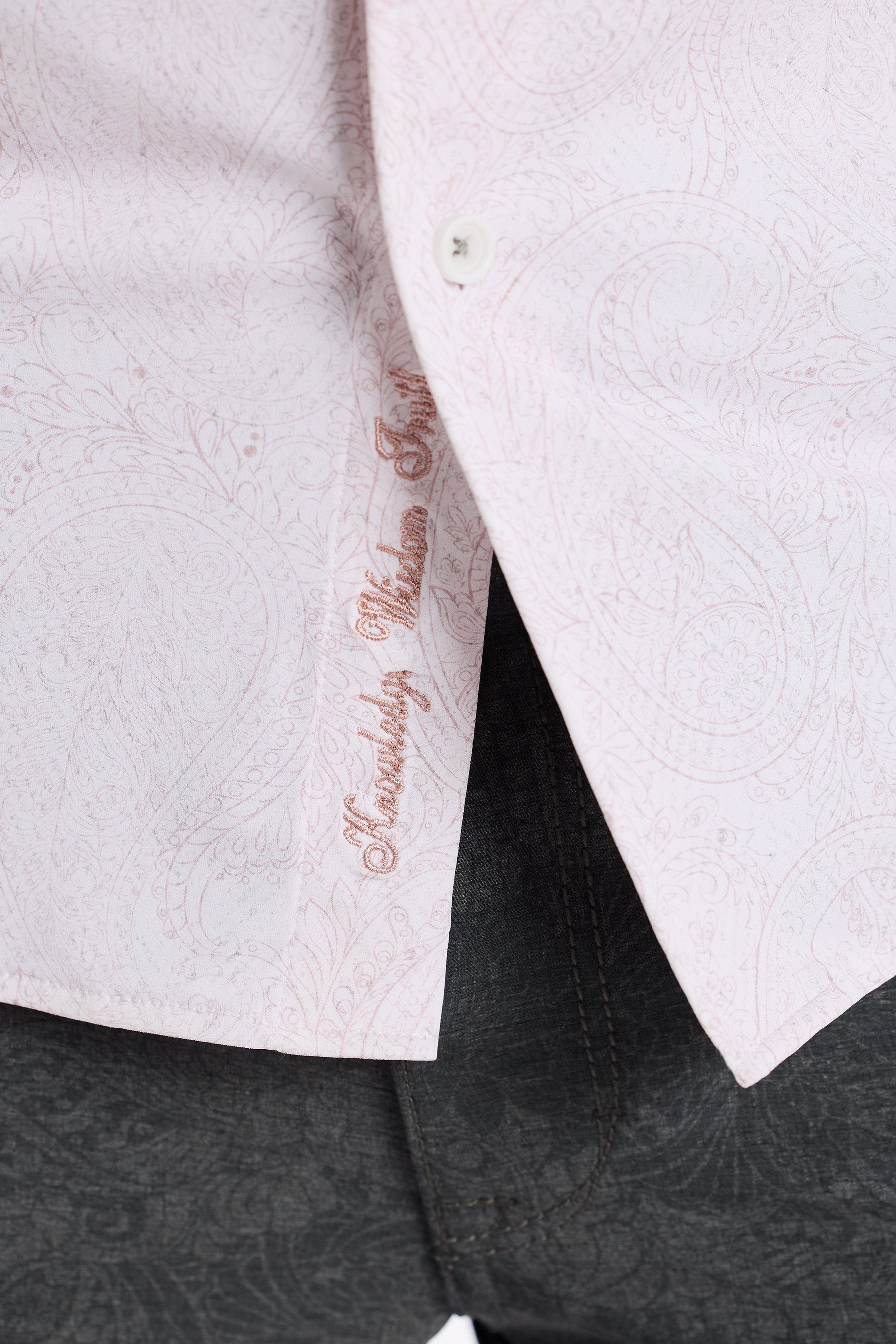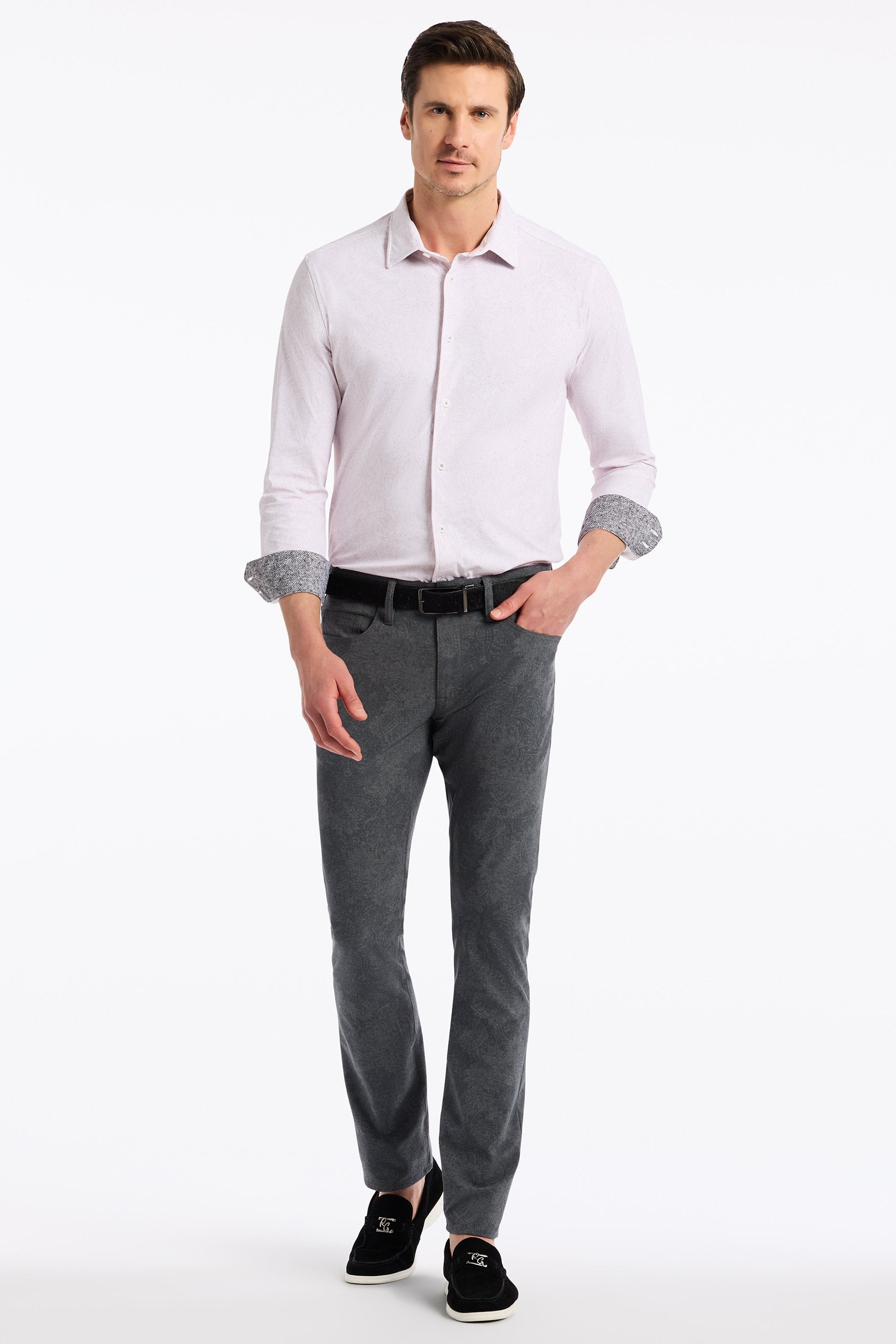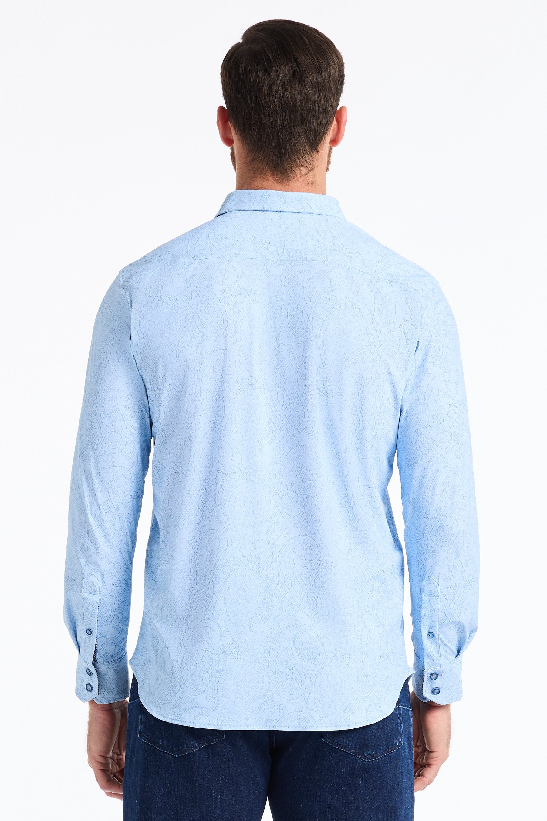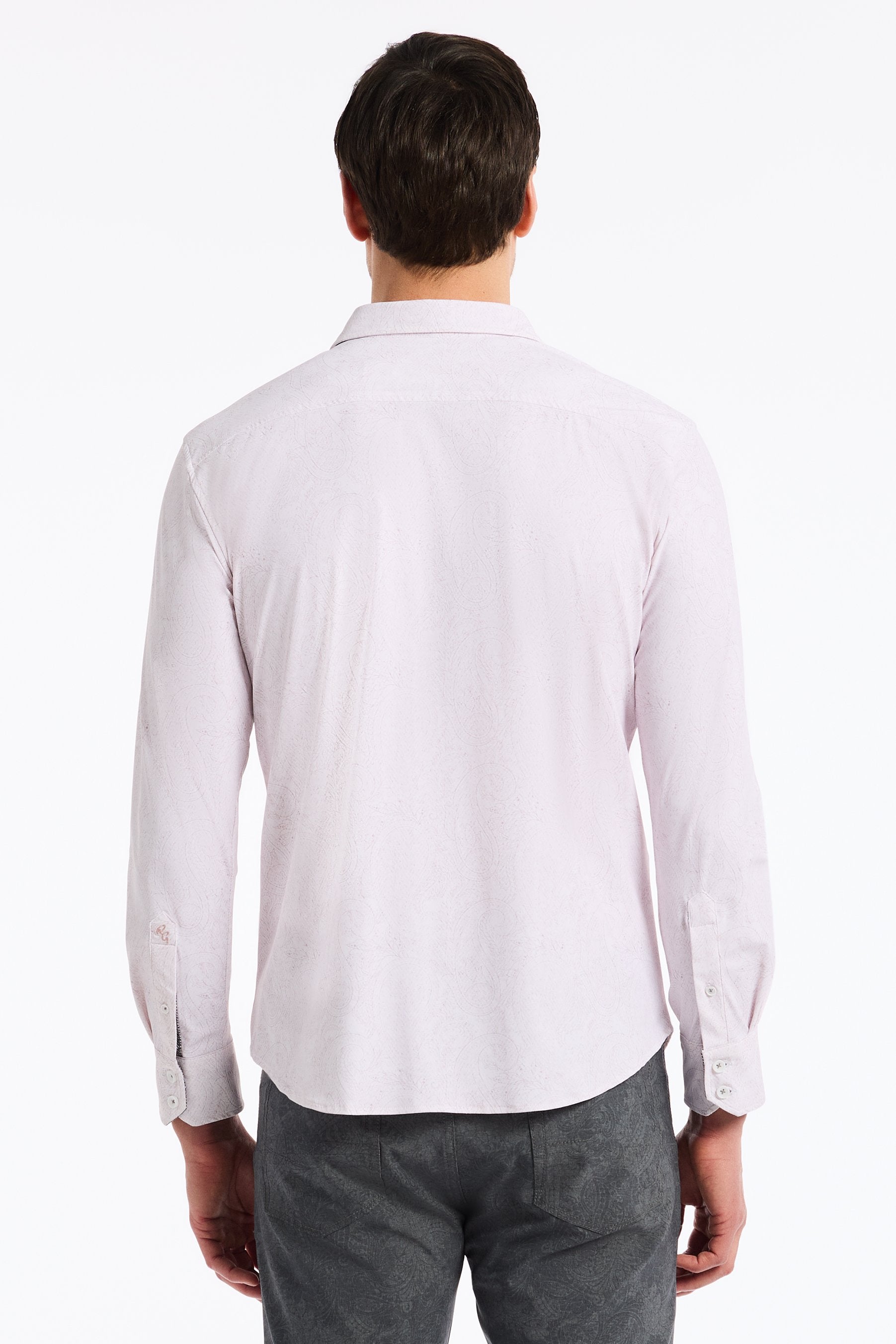 Elevate your wardrobe with the perfect blend of classic sophistication and contemporary style. This button down shirt is crafted from our popular motion fabric, giving it a hint of stretch for a comfortable fit that makes it ideal for both workdays and weekends. The subtle paisley print adds a touch of timeless elegance, while the true style comes to life when you pop the collar or roll the cuffs, revealing a unique herringbone-inspired pattern that adds that RG finishing touch.