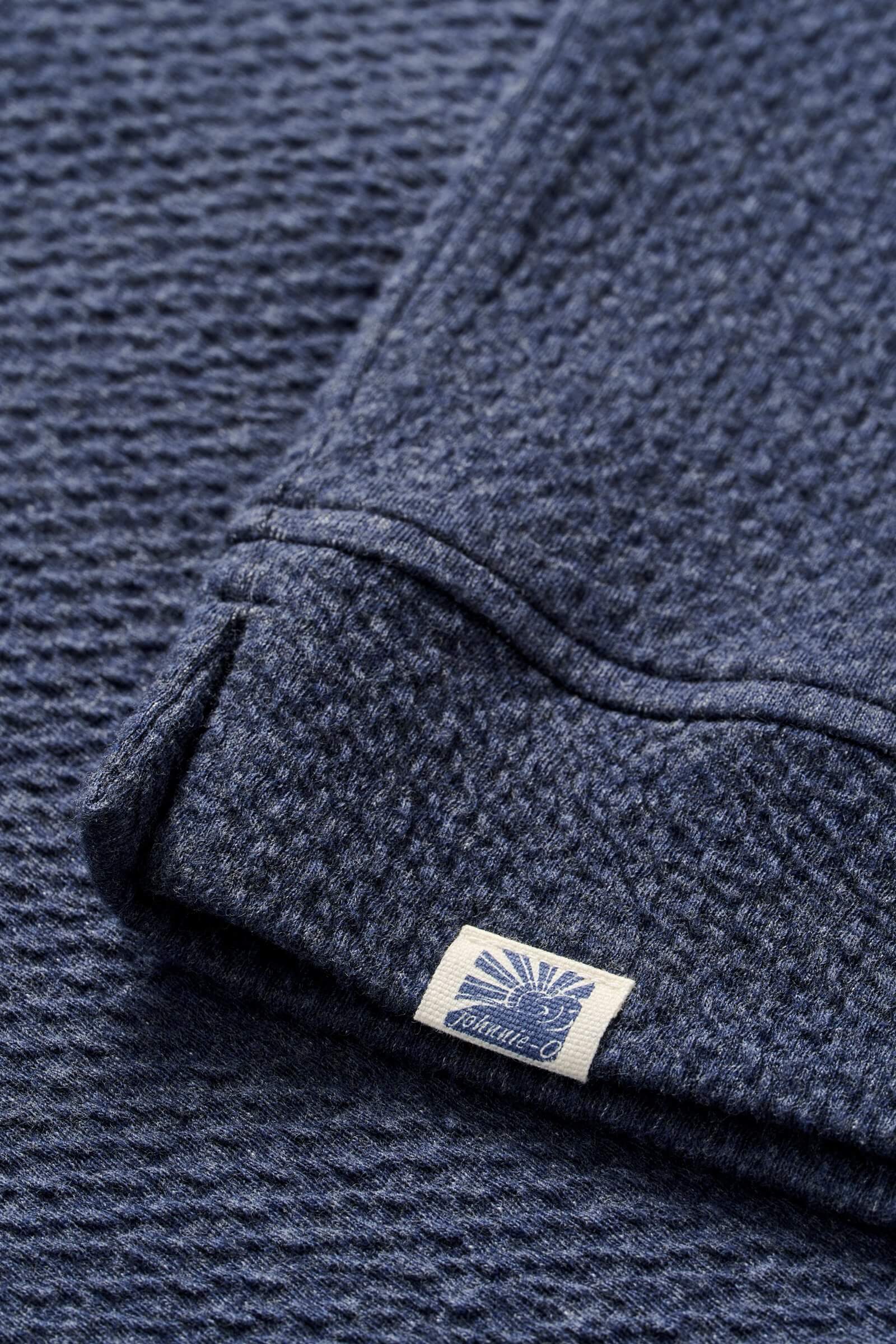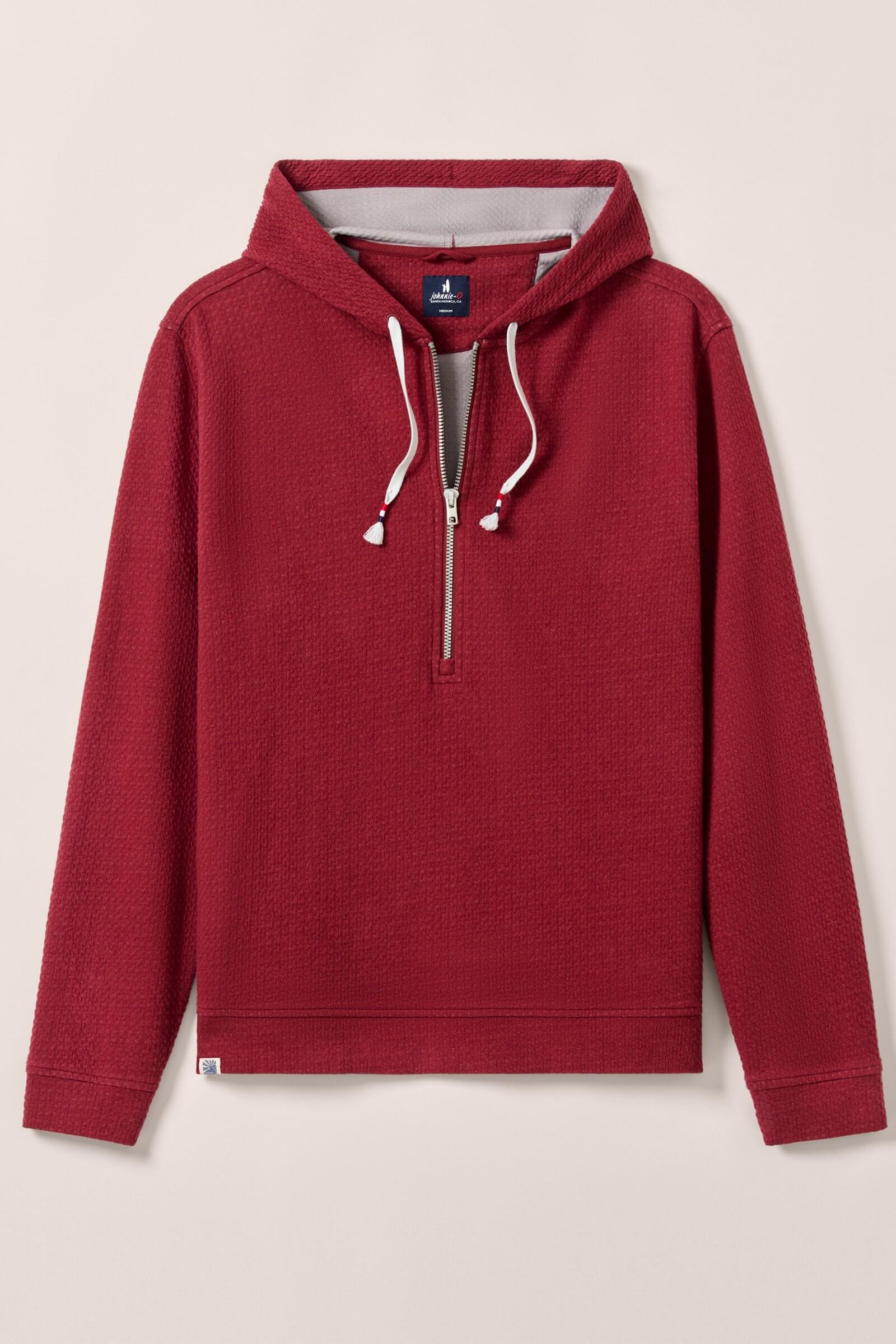 “RIPPLE KNIT” QUARTER ZIP POPOVER HOODED SWEATSHIRT - JOHNNIE-O WAVE PATCH ON BOTTOM HEM - SPLIT TAIL - DRAWCORD - SIGNATURE PULLER