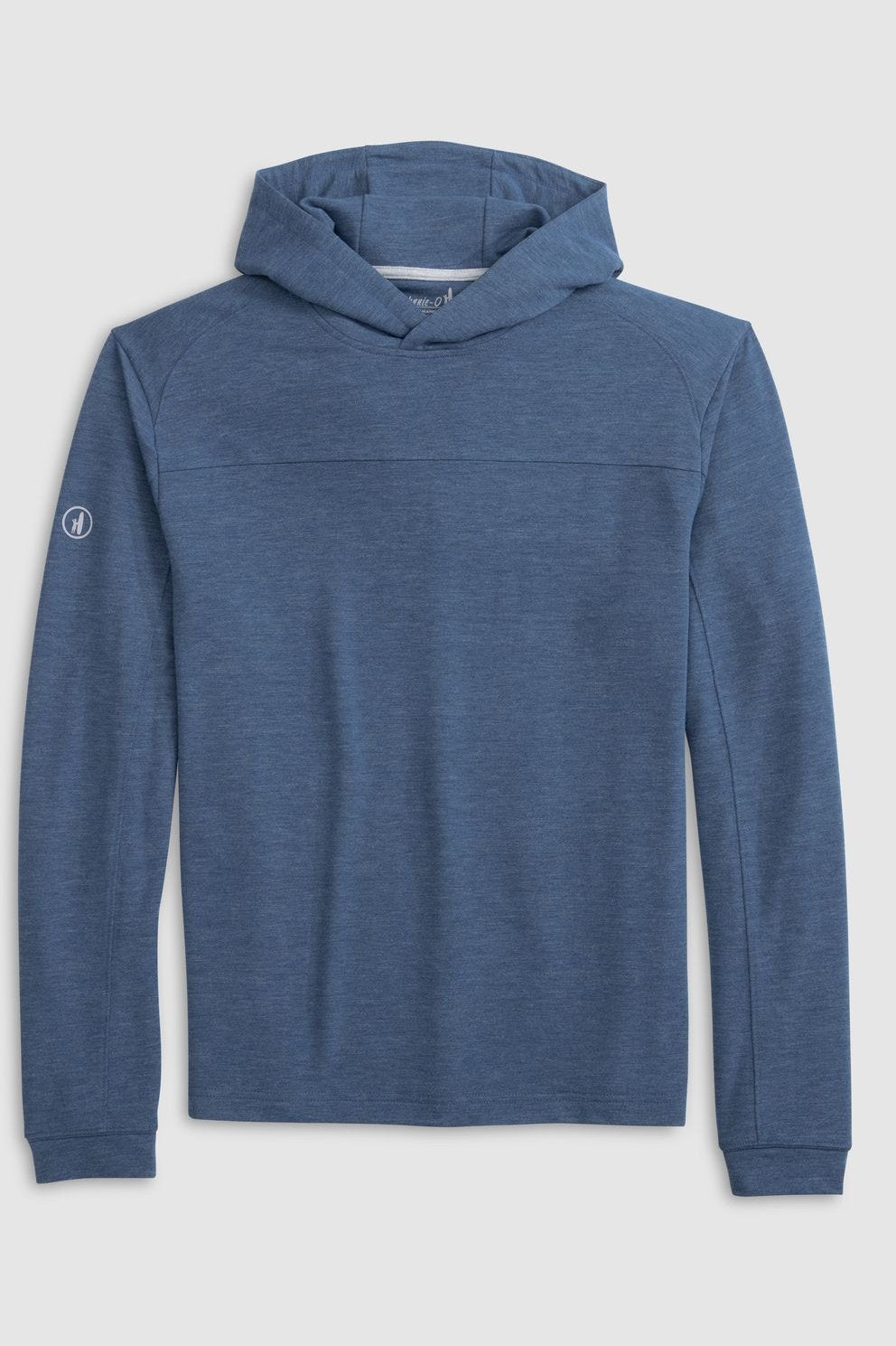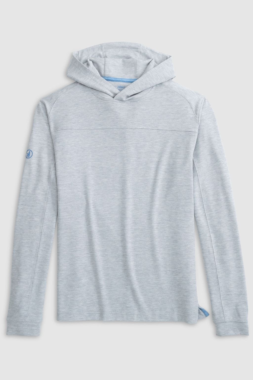 LIGHTWEIGHT PERFORMANCE FRENCH TERRY 4 WAY STRETCH HOODED PULLOVER - SPLIT TAIL - RAISED SILICONE SURFER DUDE LOGO ON RIGHT SLEEVE
