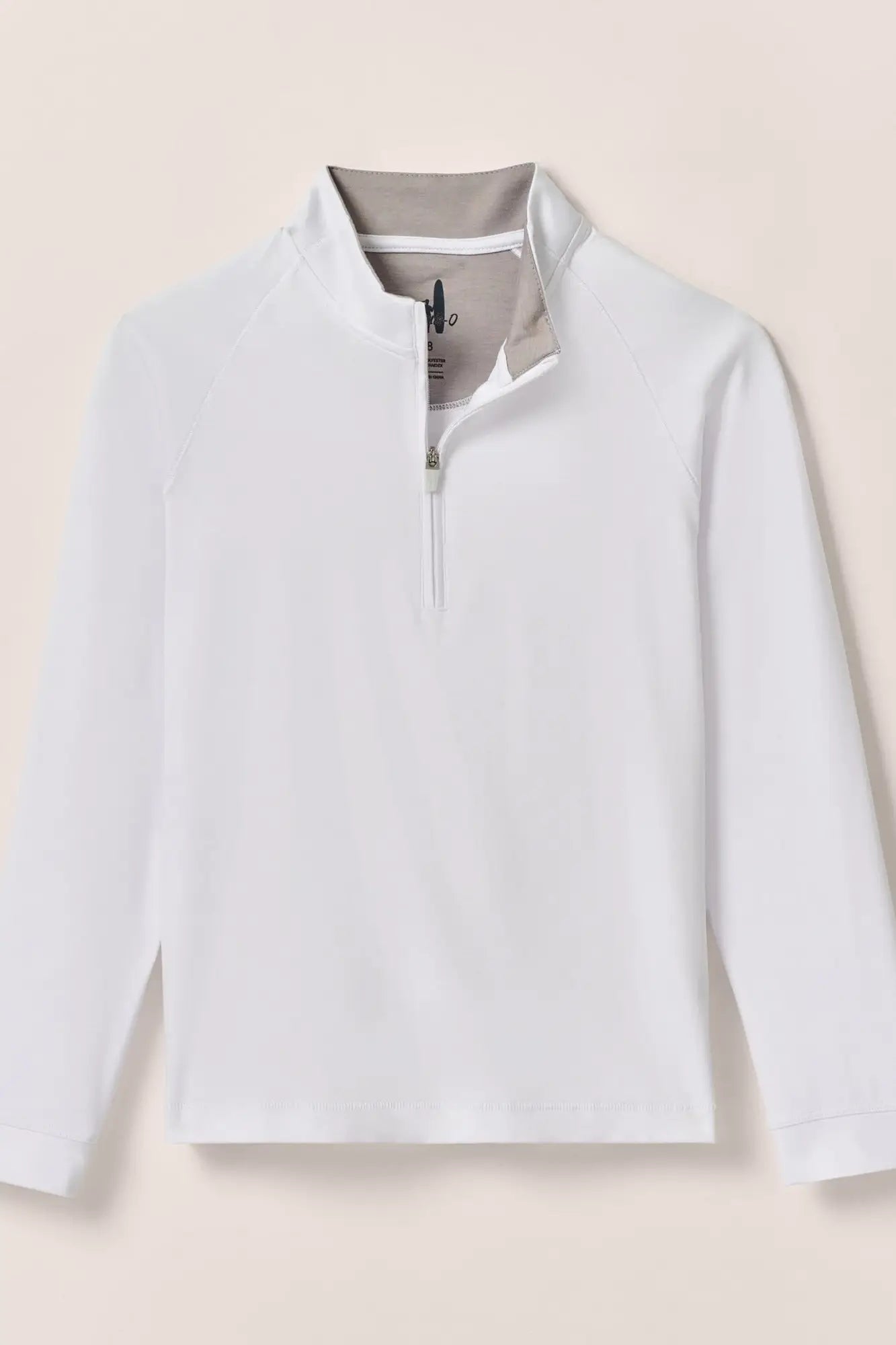 PEACHED LIGHTWEIGHT 4 WAY STRETCH BASE LAYER QUARTER ZIP MERROW STITCH DETAIL ON SHOULDER - SIGNATURE PULLER RAISED SURFER DUDE SILICONE LOGO ON CENTER BACK NECK - UPF 50 SUN PROTECTION