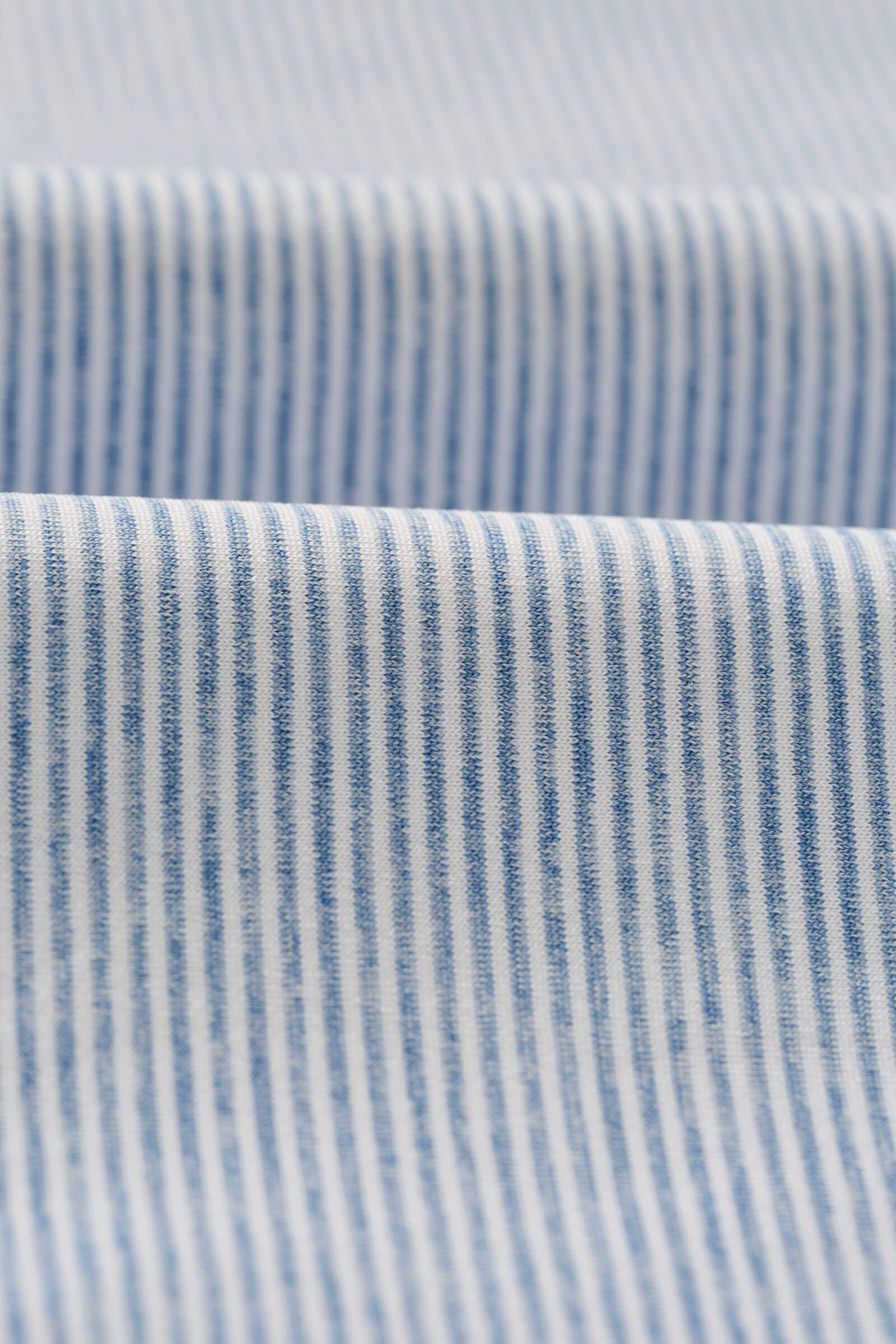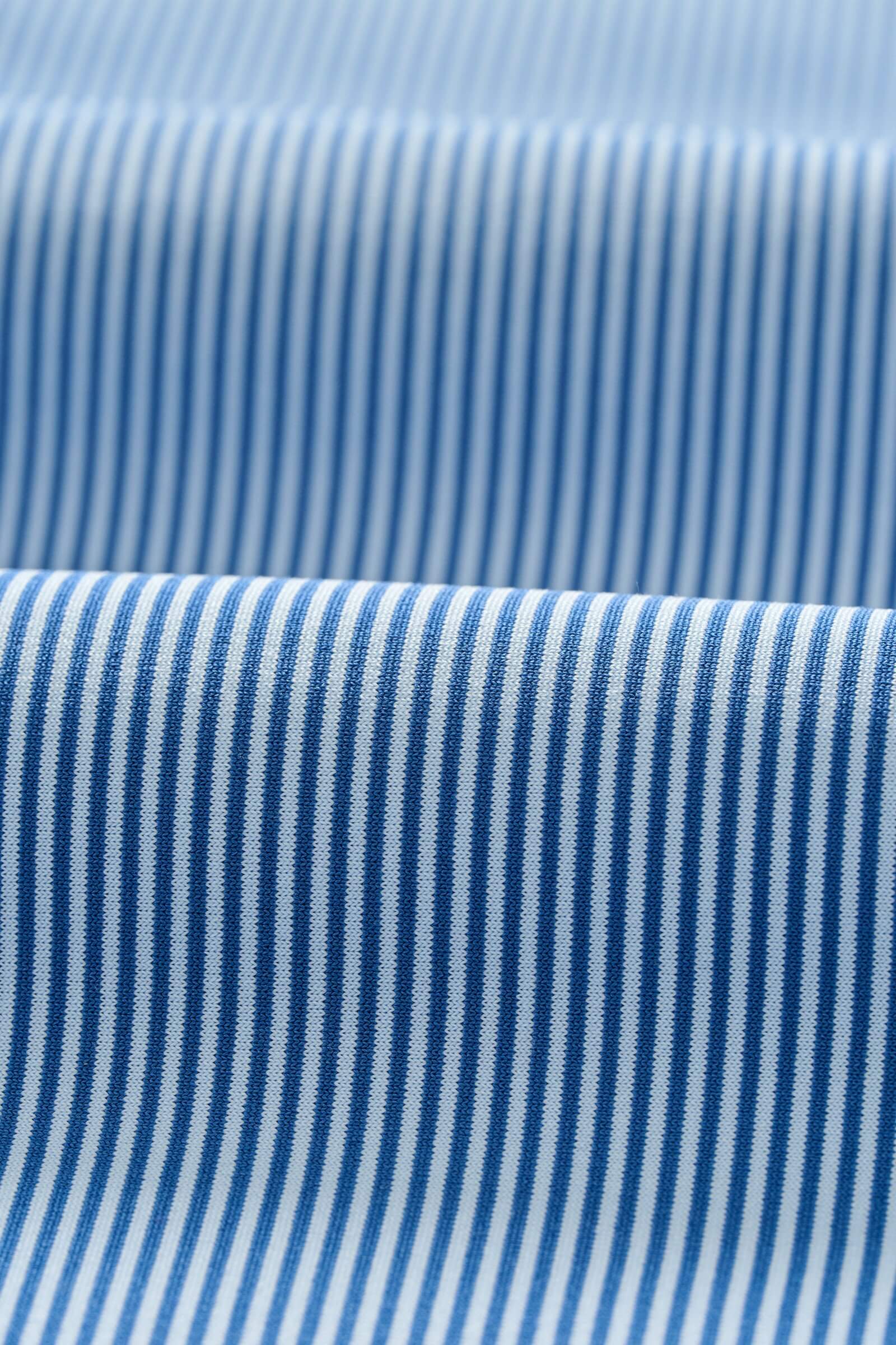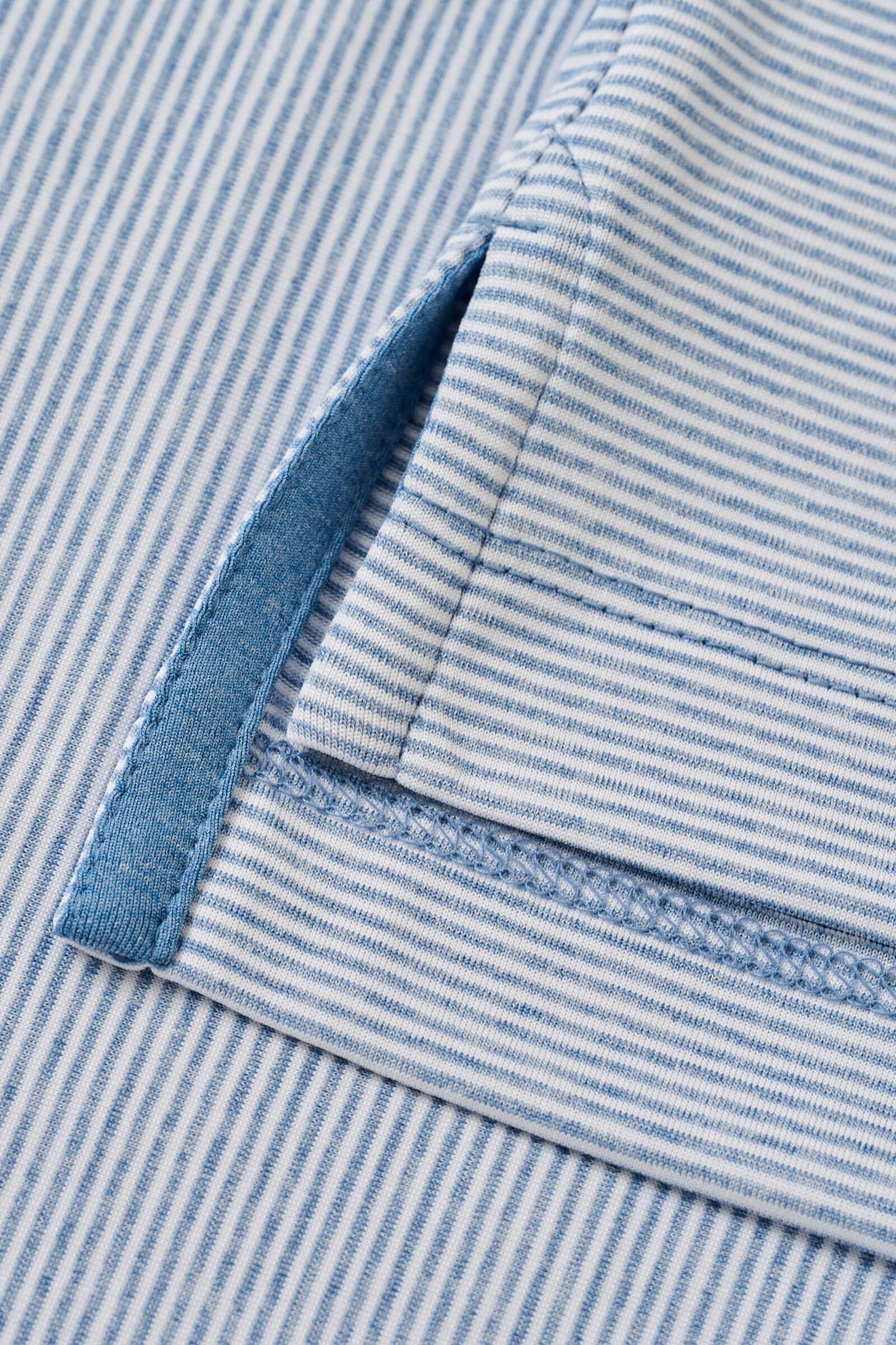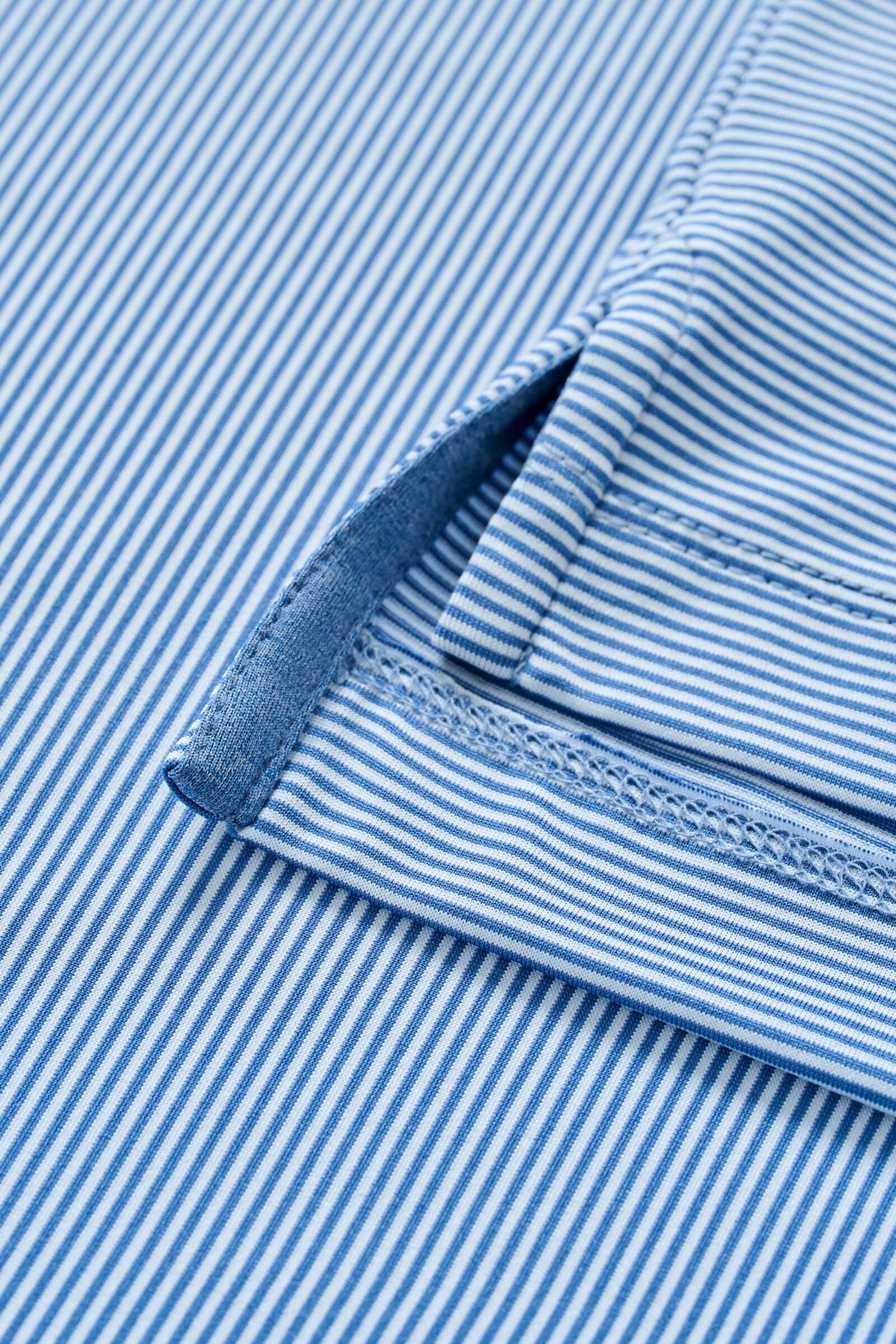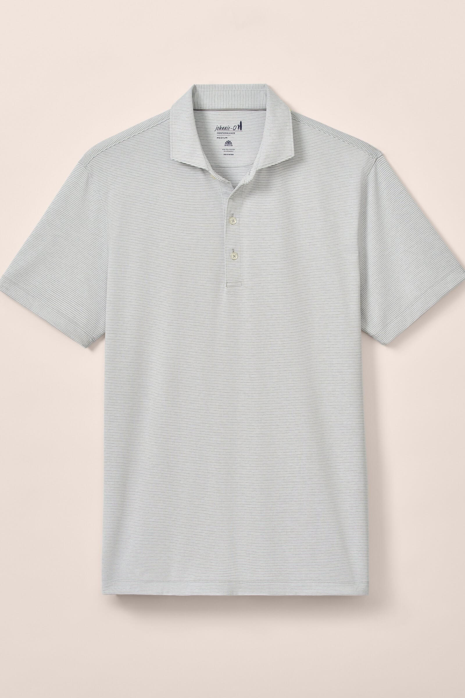 PINSTRIPE PERFORMANCE 3 BUTTON POLO - SIDE VENTS LEFT CHEST OPEN - EMBROIDERED LOGO ON CENTER BACK YOKE - MOISTURE WICKING - UPF 50 SUN PROTECTION