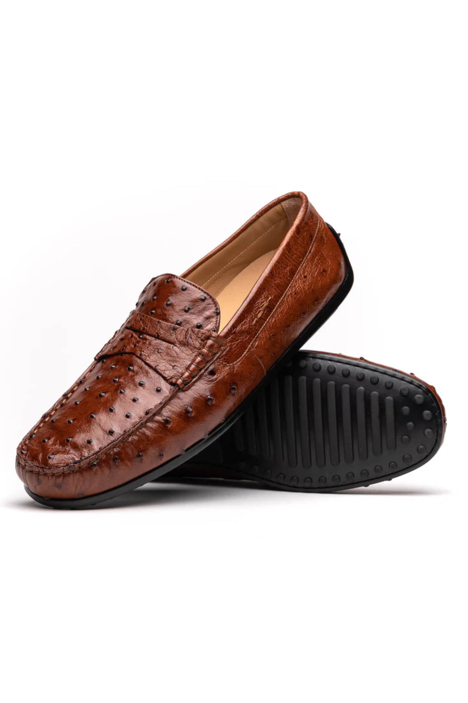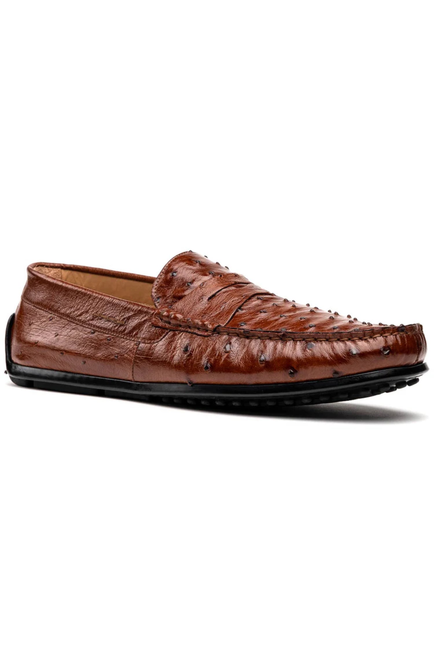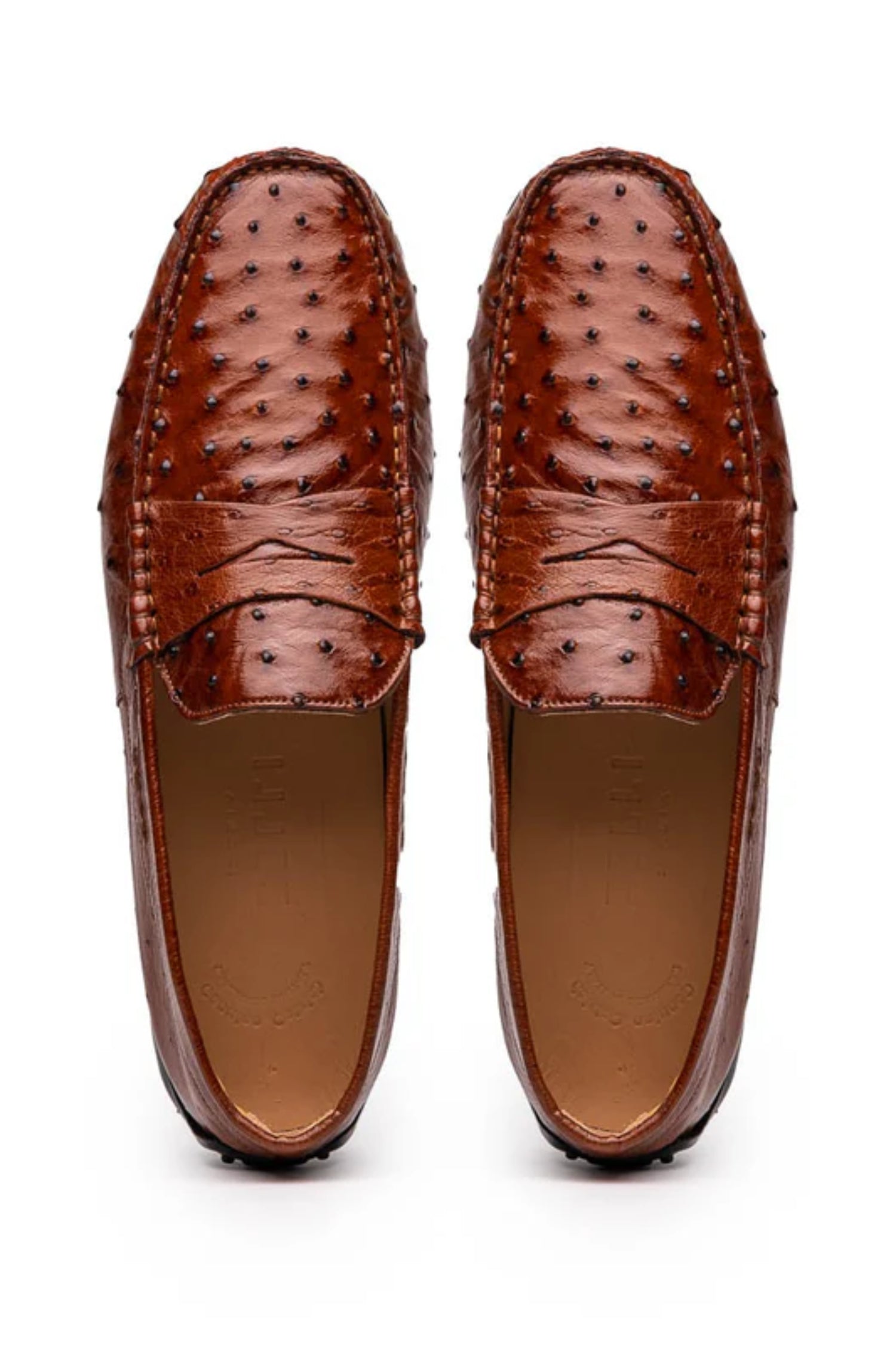 Genuine ostrich Quill with full calfskin linings. Fully cushioned insole for comfort with Italian high performance Gomma driver sole