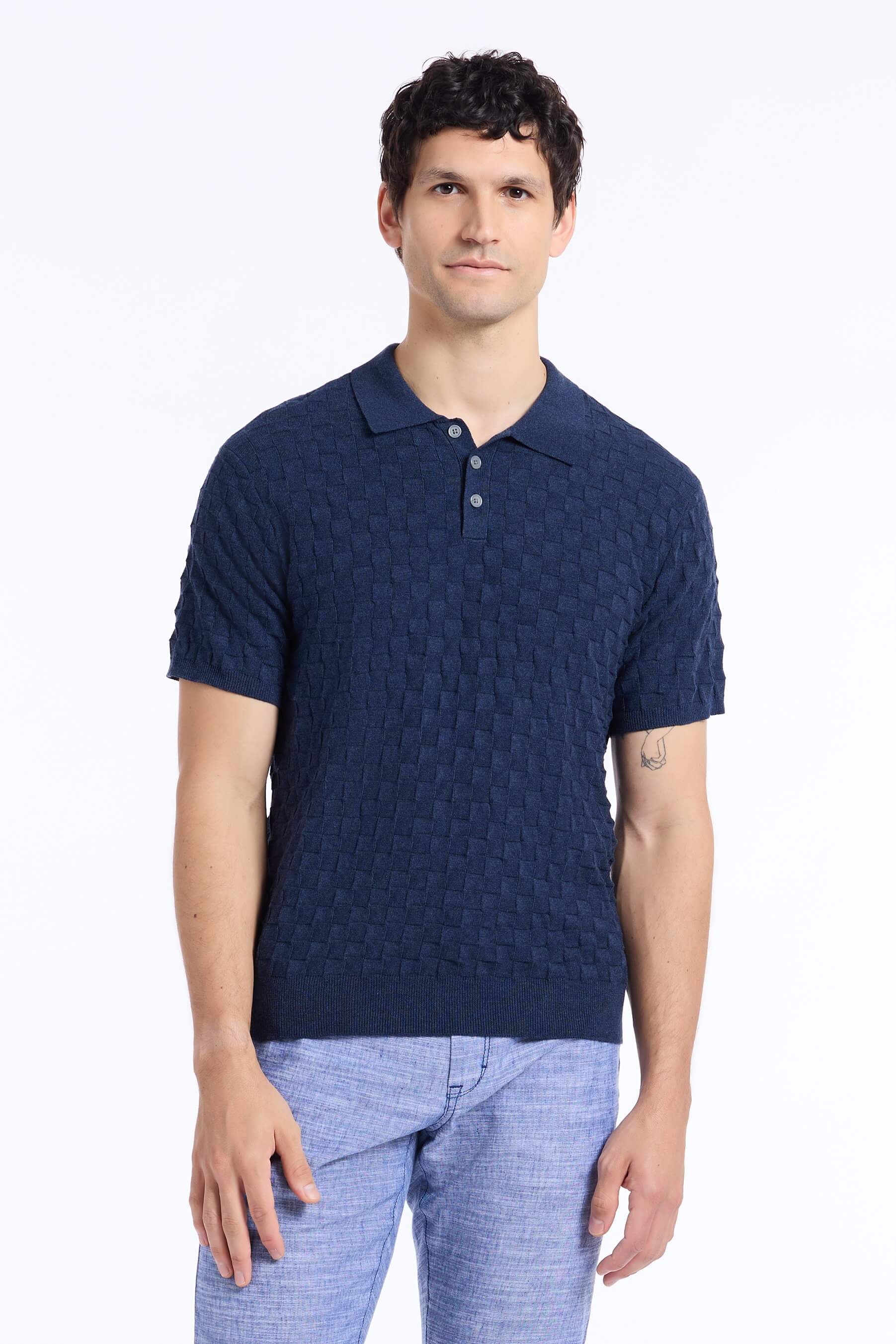 The Hampson polo brings refined ease to your everyday rotation. Crafted from 100% cotton with a dimensional basketweave texture, it delivers both comfort and understated sophistication. A trio of tortoiseshell buttons at the placket adds a touch of classic detail, while ribbed cuffs and hem keep the silhouette clean and tailored.